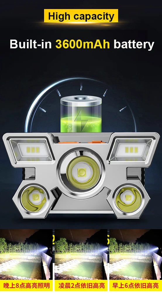 80,000lm Powerful USB Rechargeable LED Headlamp Flashlight for Camping, Fishing, XHP360 Large Aperture Headlight Lantern