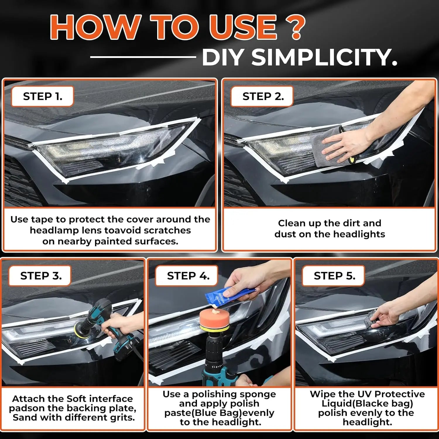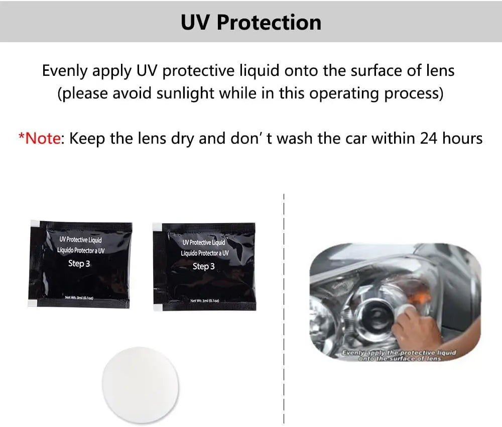 Headlight Restoration Kit - Repair Yellowing & Aging for Car Headlights & Tail Lights - Polish & Wax to New Finish