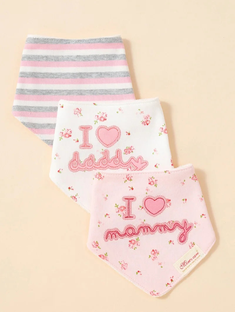 Cotton Baby Bibs Set 3pcs Bandana Newborn Infant Drool & Burp Cloths Cartoon Design