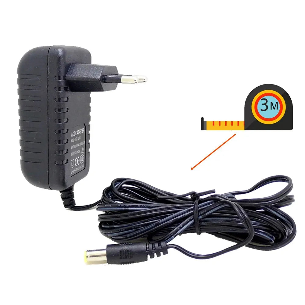Enhance your electronic devices with this high-quality AC to DC Adapter, perfect for CCTV cameras, routers, and LED strips. This adapter converts a wide range of AC input (100V-240V) into a stable 12V DC output, ensuring reliable performance for your devices. With a robust 3-meter power cord, you have the flexibility to position your devices as needed. The adapter features an EU plug, an ABS plastic shell for durability, and an indicator light for easy monitoring.