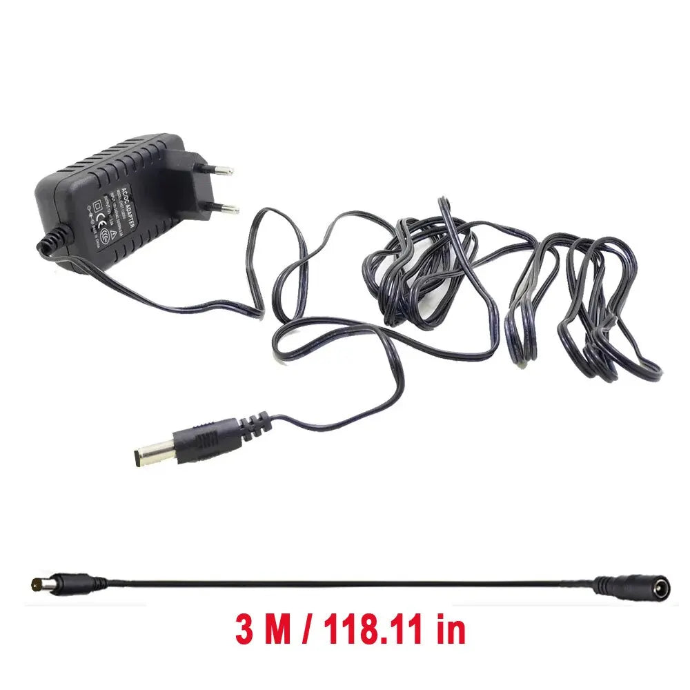 EU Plug Power Adapter 3m Extension Cord AC 100-240V to DC 12V 2A for CCTV Camera LED 2.1mmx5.5mm