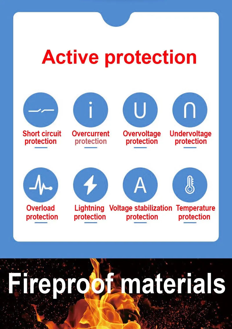 - Safety Features: Stable voltage, impact-resistant shell, and water protection