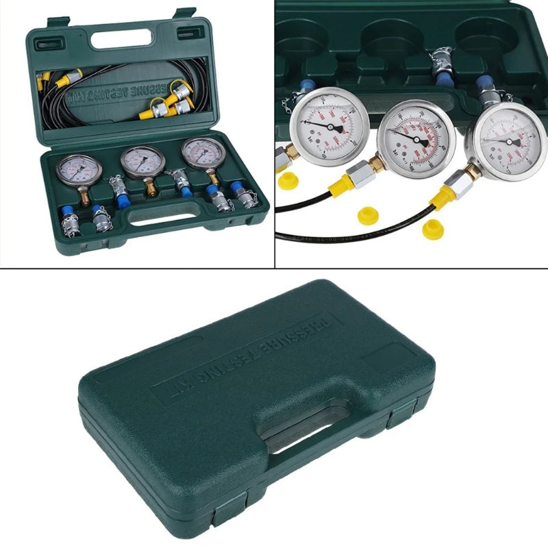 - Package Includes: 3 Pressure Gauges, 3 Test Hoses, 6 Test Couplings, 1 Protective Box