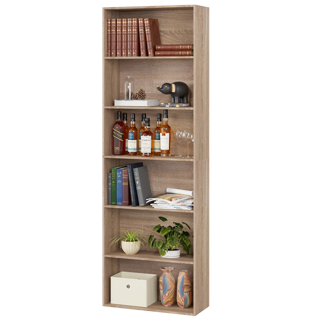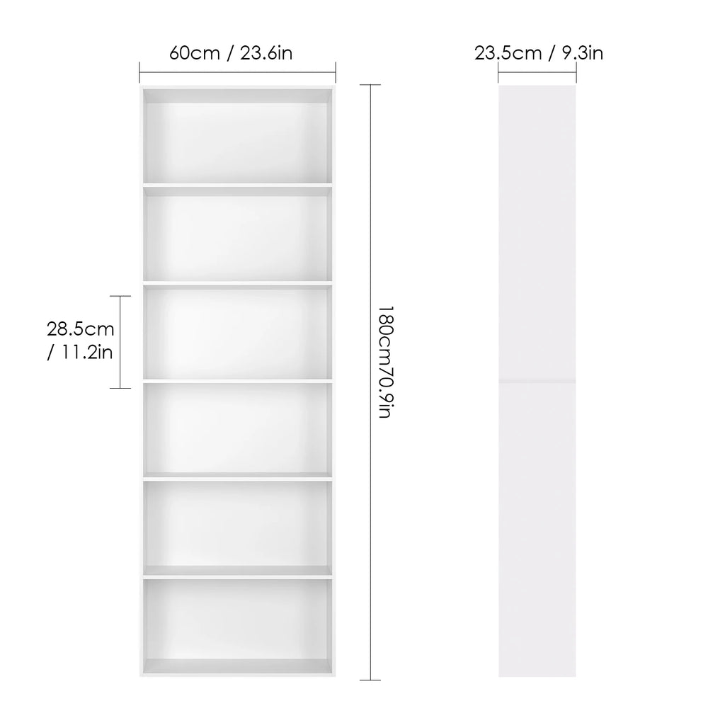 6-Tier Bookcase Bookshelf, 180cm Wooden Shelving Unit, Display Storage Rack, 60x23.5x180cm, White/Black/Oak