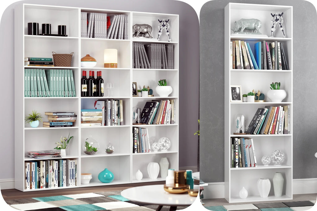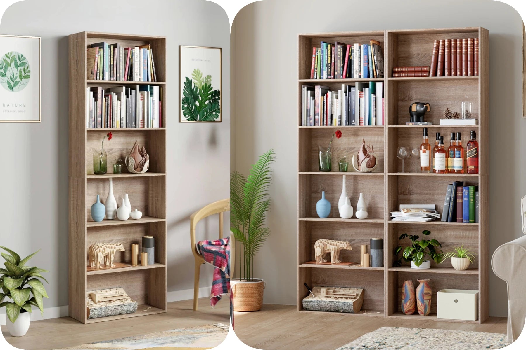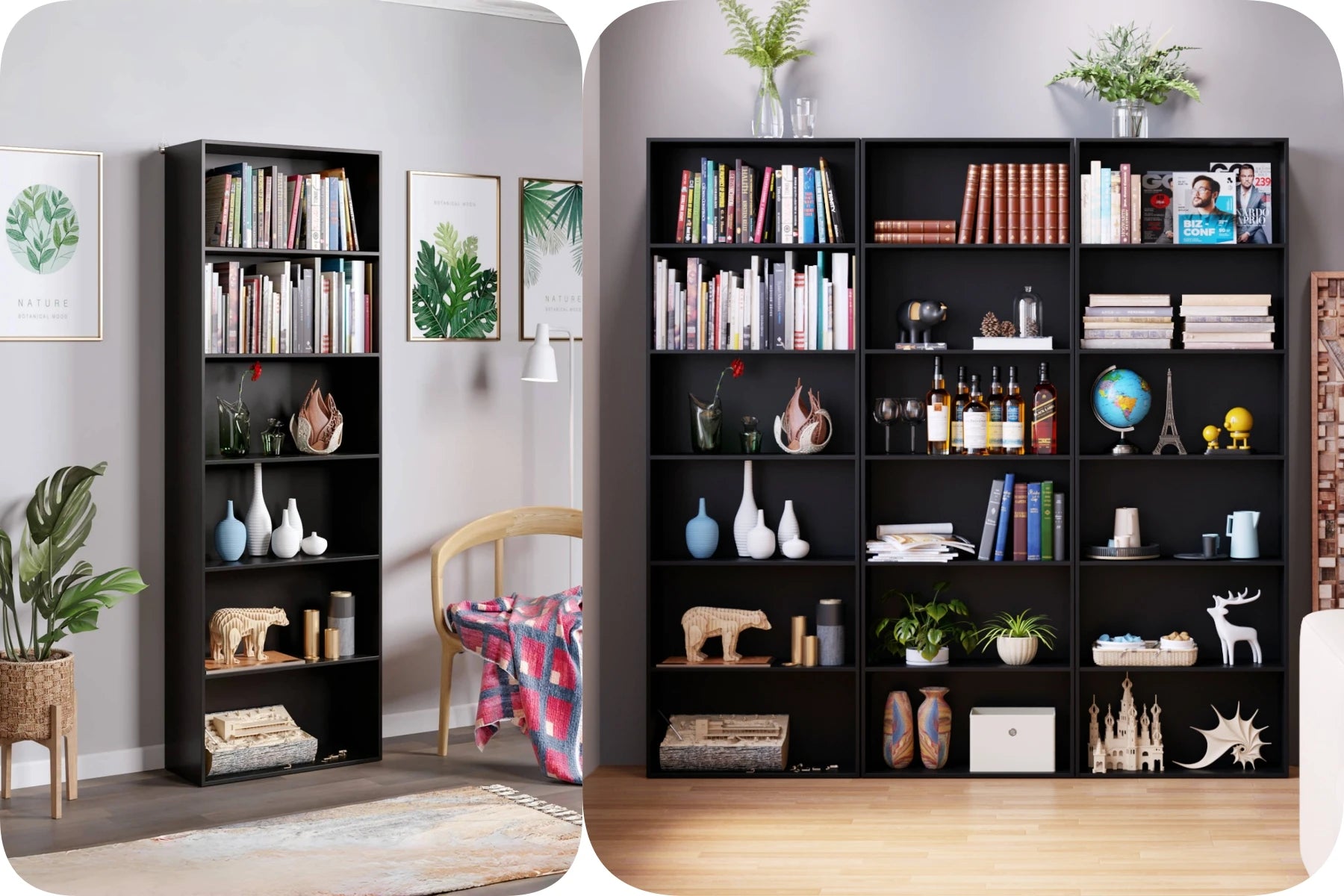 This versatile bookcase brings both style and functionality to your home, making it a perfect addition for any room in need of a modern storage solution.