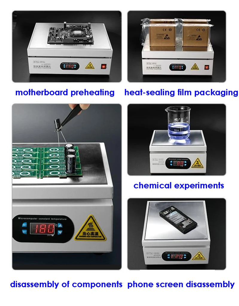 With a temperature range of 0-400℃, this heat sealer is ideal for a wide variety of applications, including PCB and LCD screen repair. Choose between two heating aluminum plate sizes: 100×100mm or 150×150mm, depending on your needs.