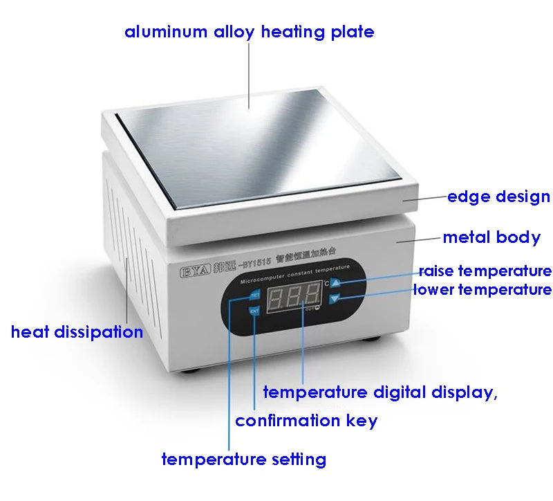 - Heating Plate Sizes: Available in 100×100mm or 150×150mm.