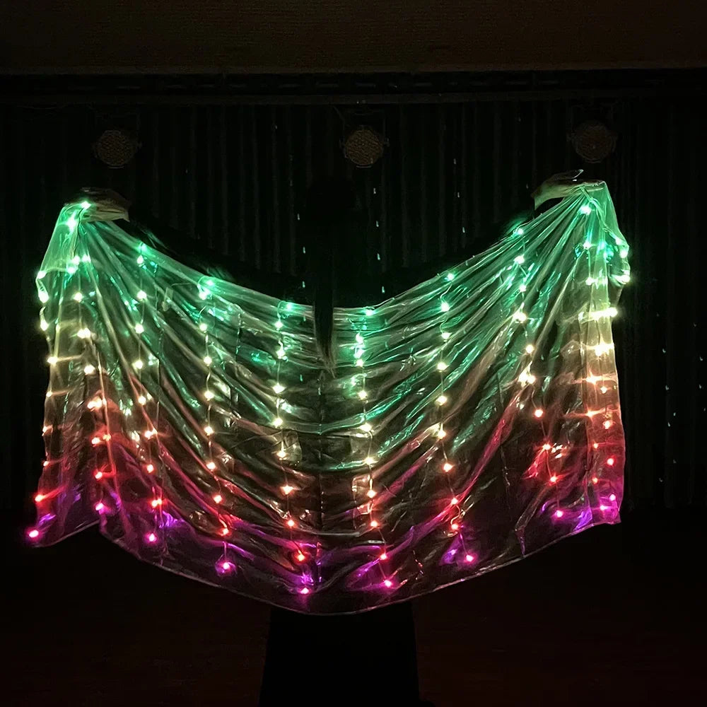 2m x 1m Polyester LED Light Up Belly Dance Veils, Carnival Dance Veil Props, Festival Belly Dancing Accessories