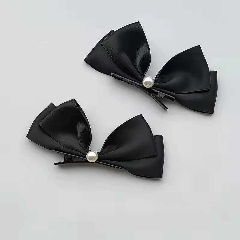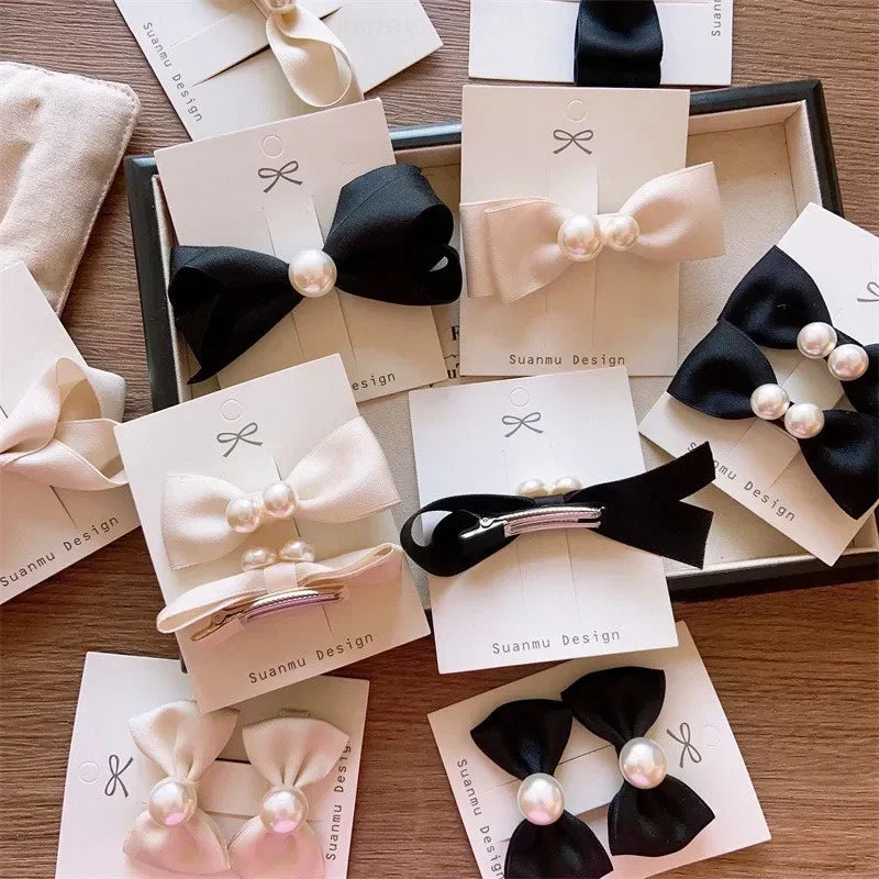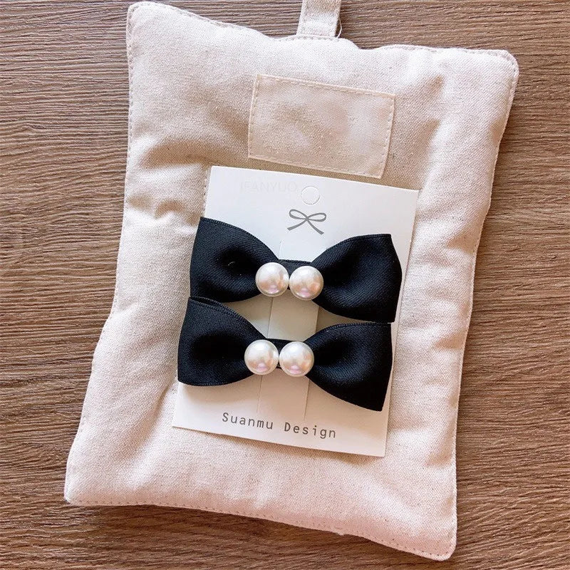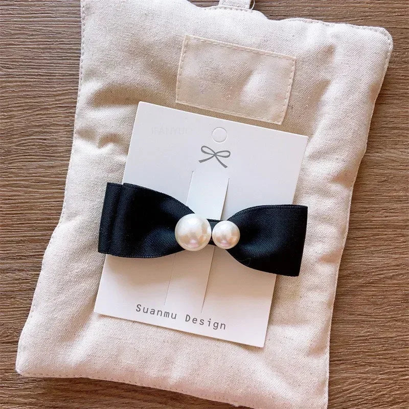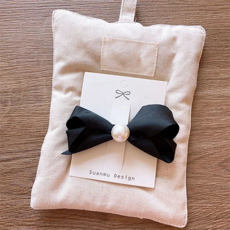 Beige Black Bow Hair Clip Duckbill Hairpin Princess Headdress Kid Accessory