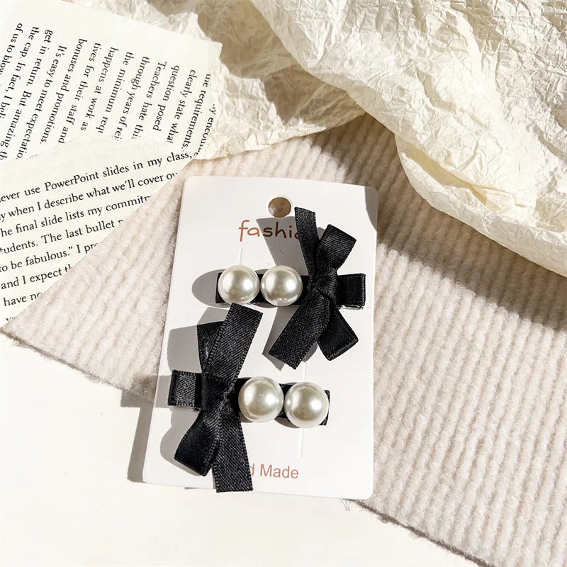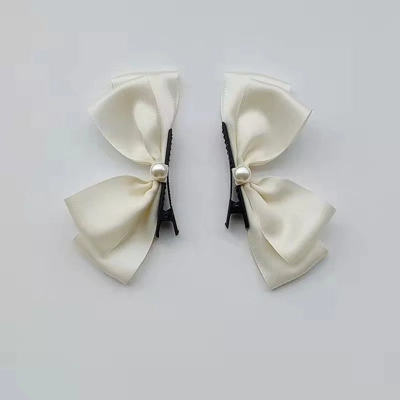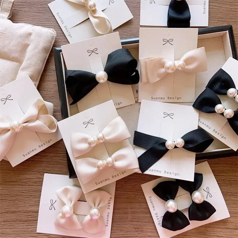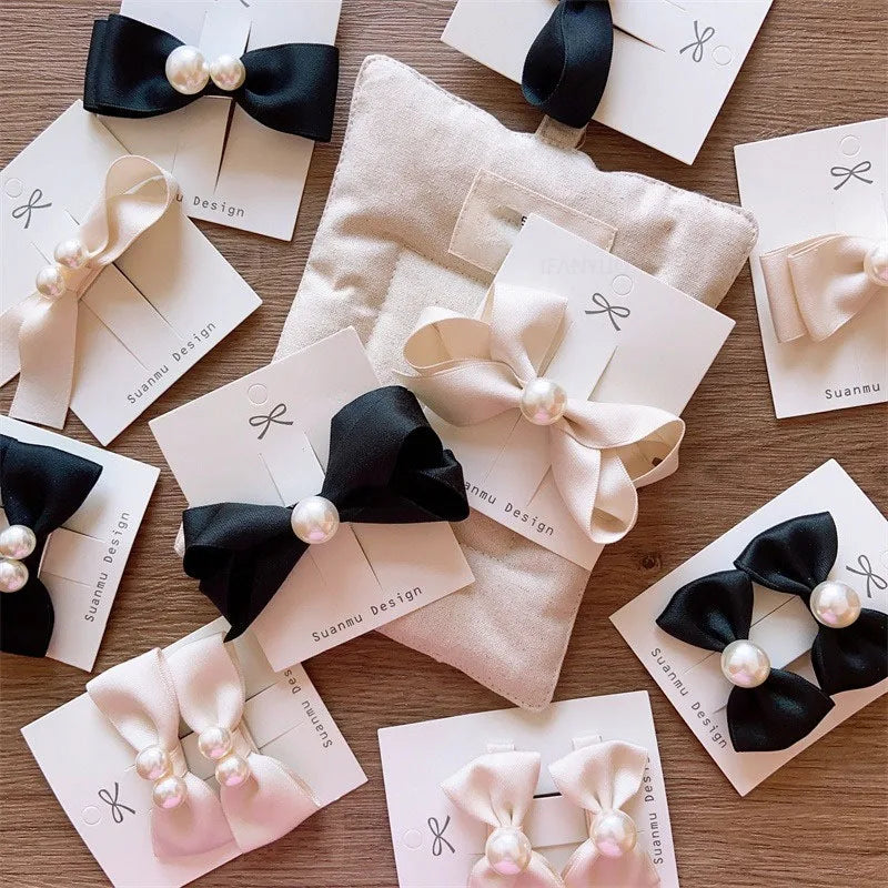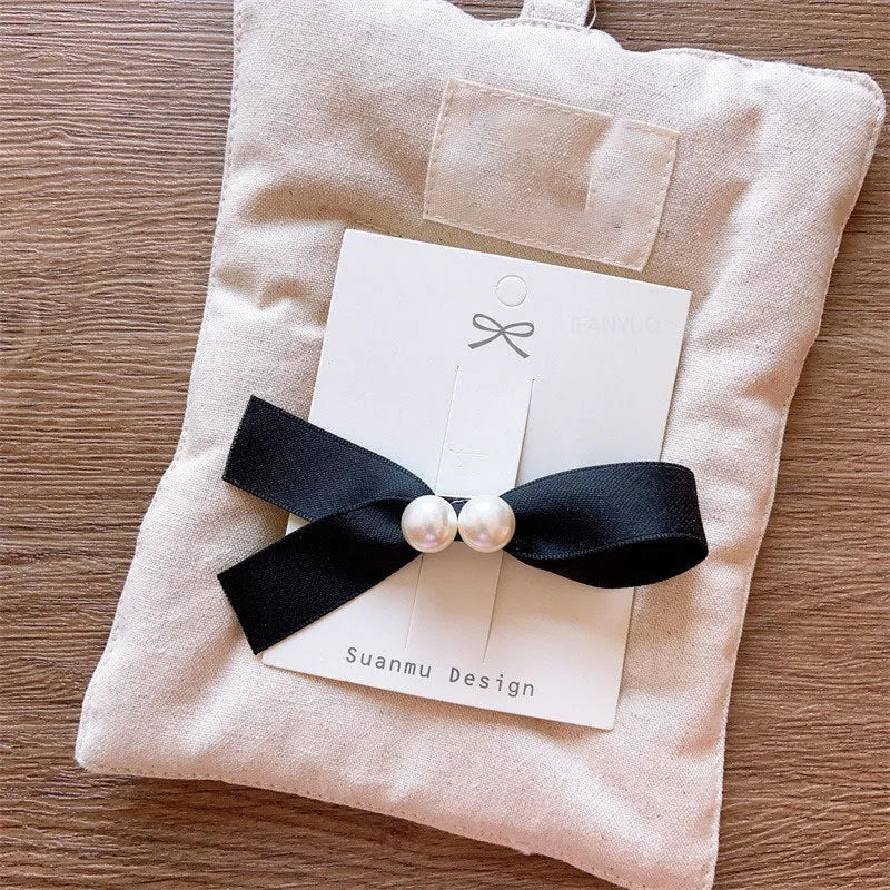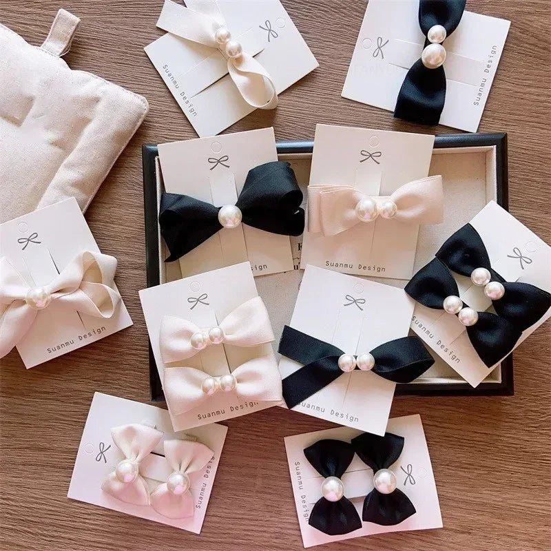 Beige Black Bow Hair Clip Duckbill Hairpin Princess Headdress Kid Accessory