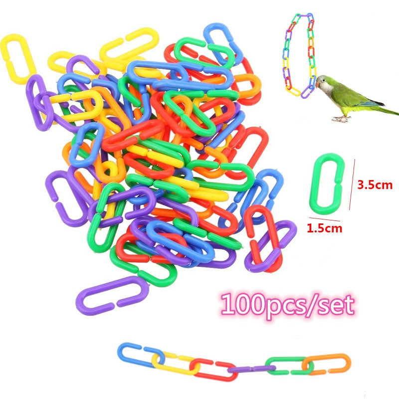 Enhance your bird's play area with the vibrant C-Shaped Plastic Chain Toy. This interactive toy is designed to keep your feathered friend entertained and active. Constructed from durable plastic, it ensures long-lasting fun. Each link measures about 1.5 x 3.5 cm, and with around 100 links included, you can customize the toy's length and arrangement to perfectly suit your bird's preferences.