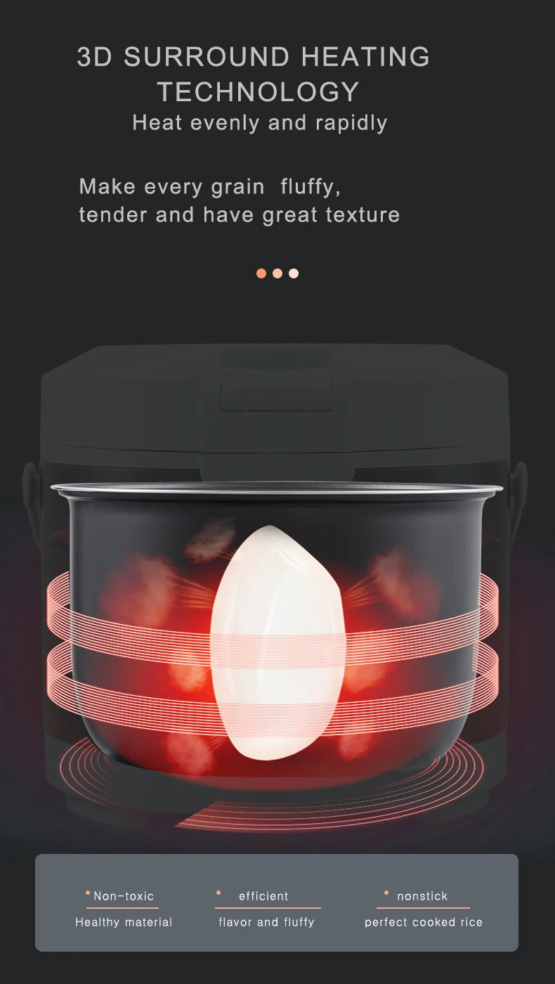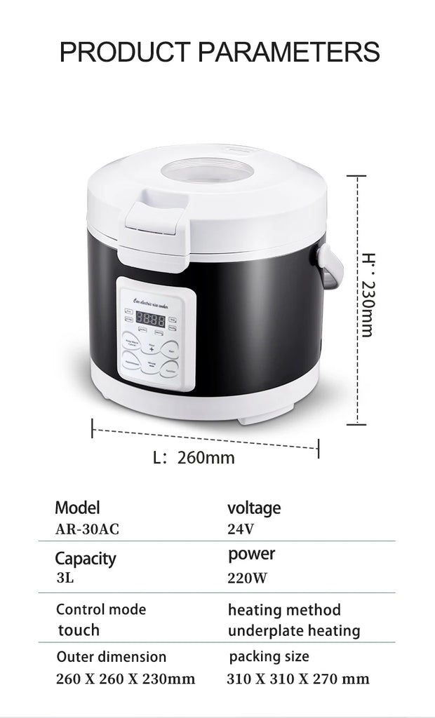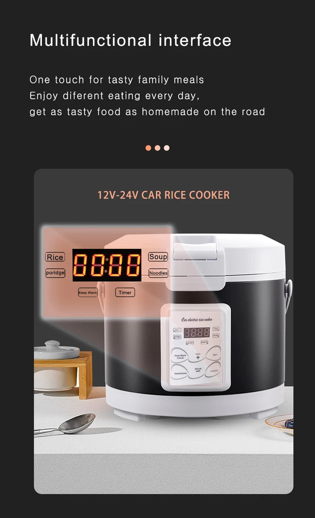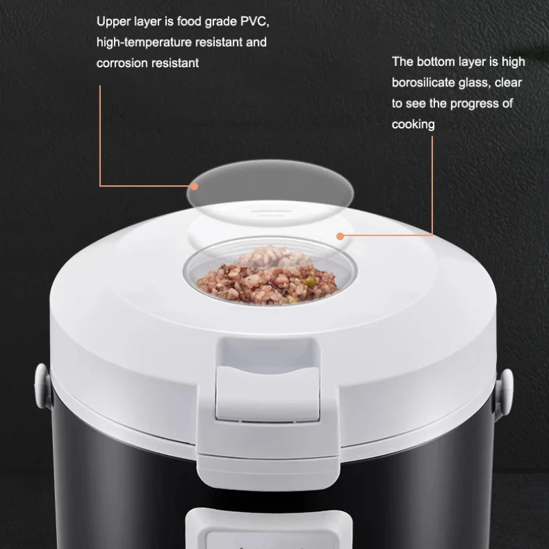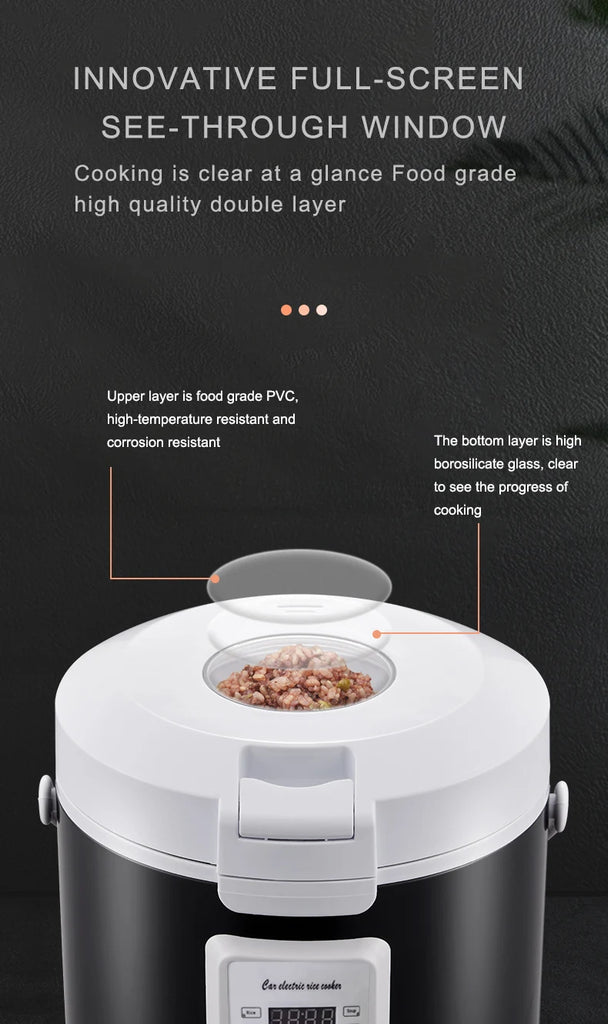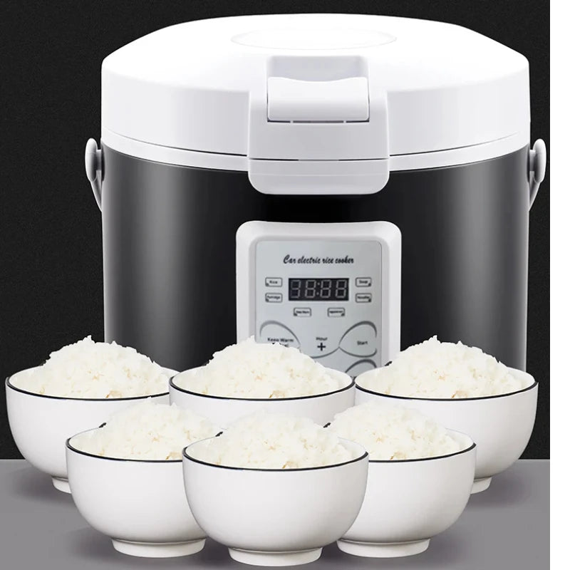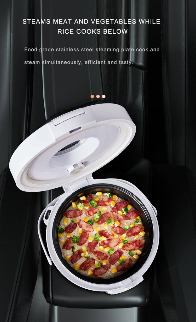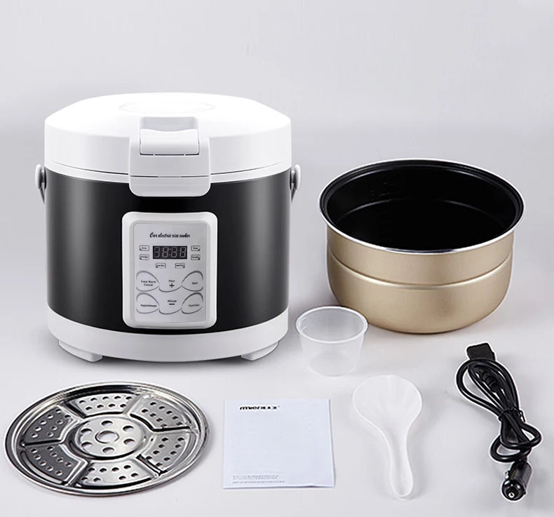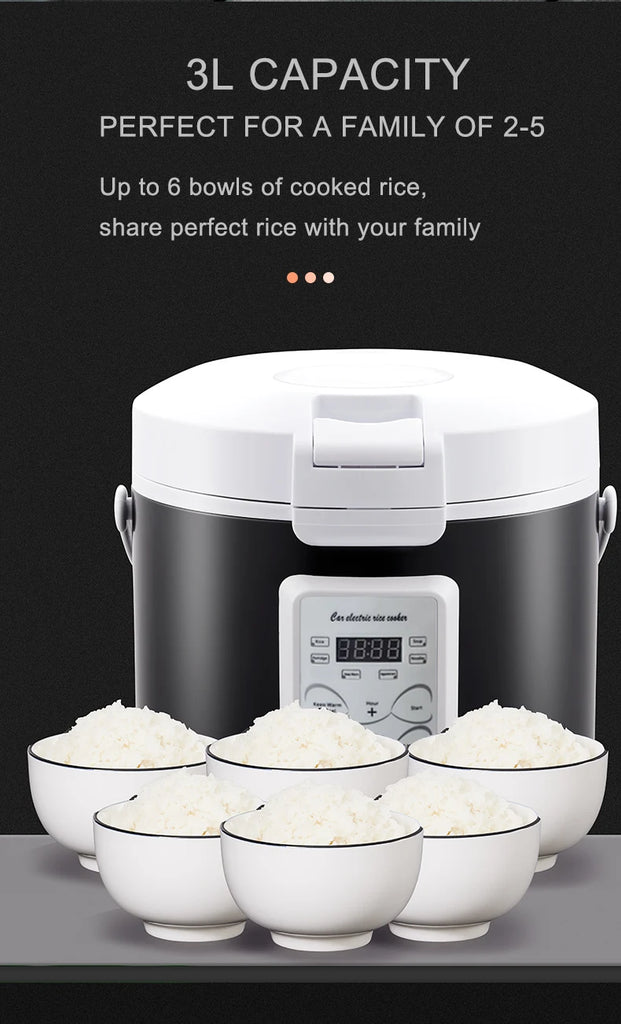 Compact 3L Multi-Voltage Rice Cooker & Food Steamer for Car, Truck, Camping 12V/24V/220V - Heat Lunch, Soup, Porridge Anywhere