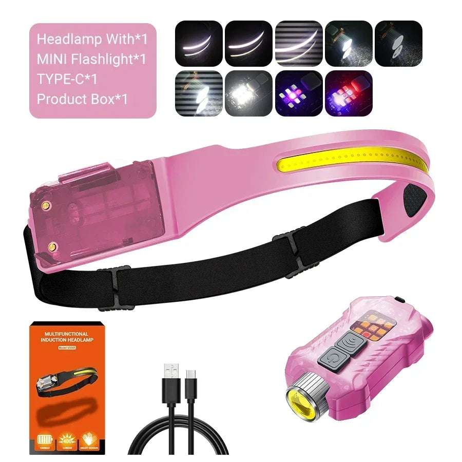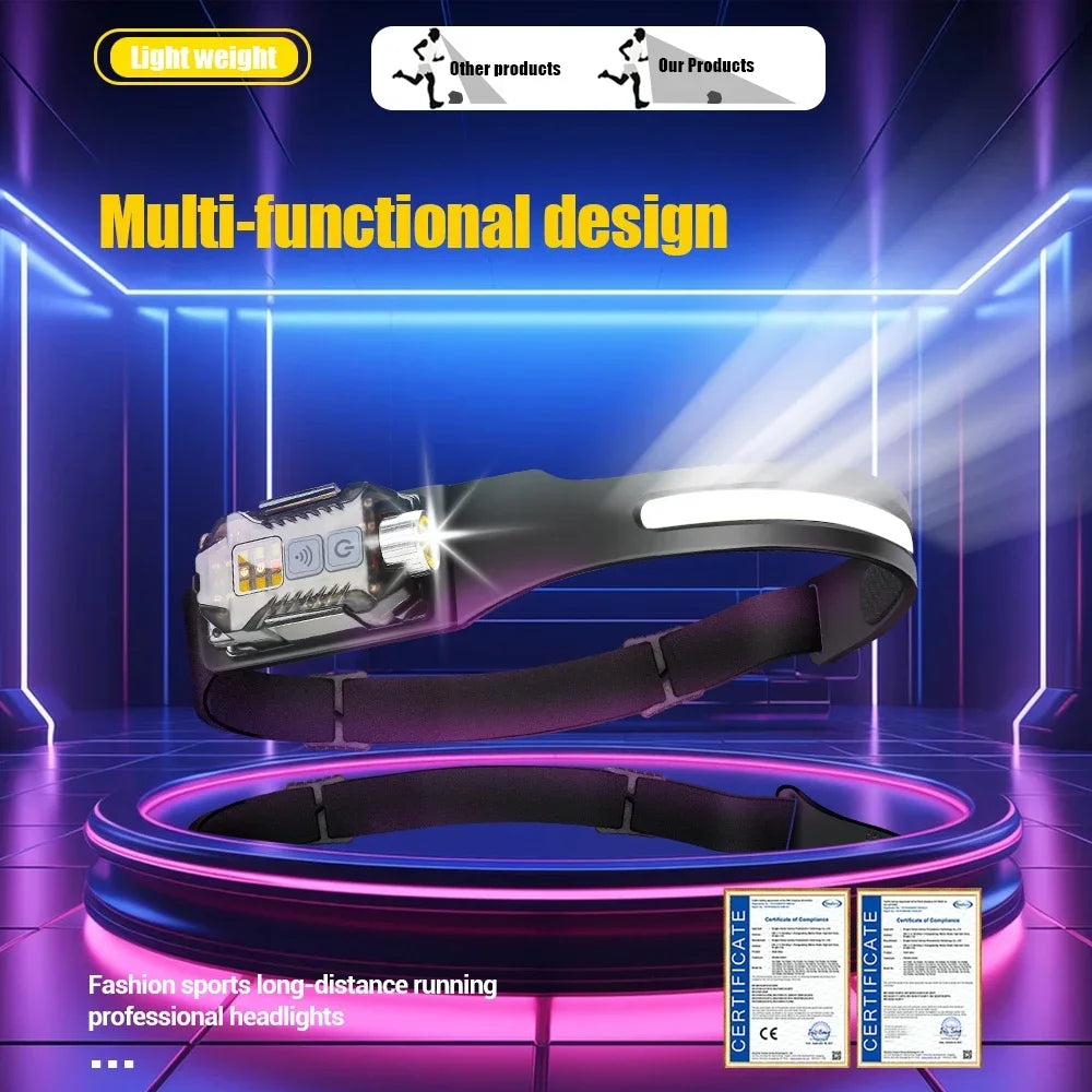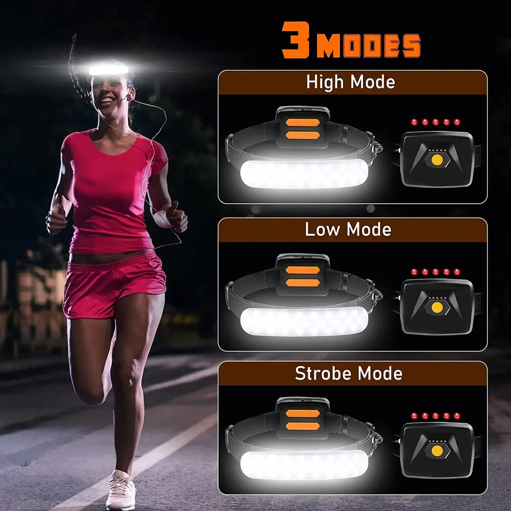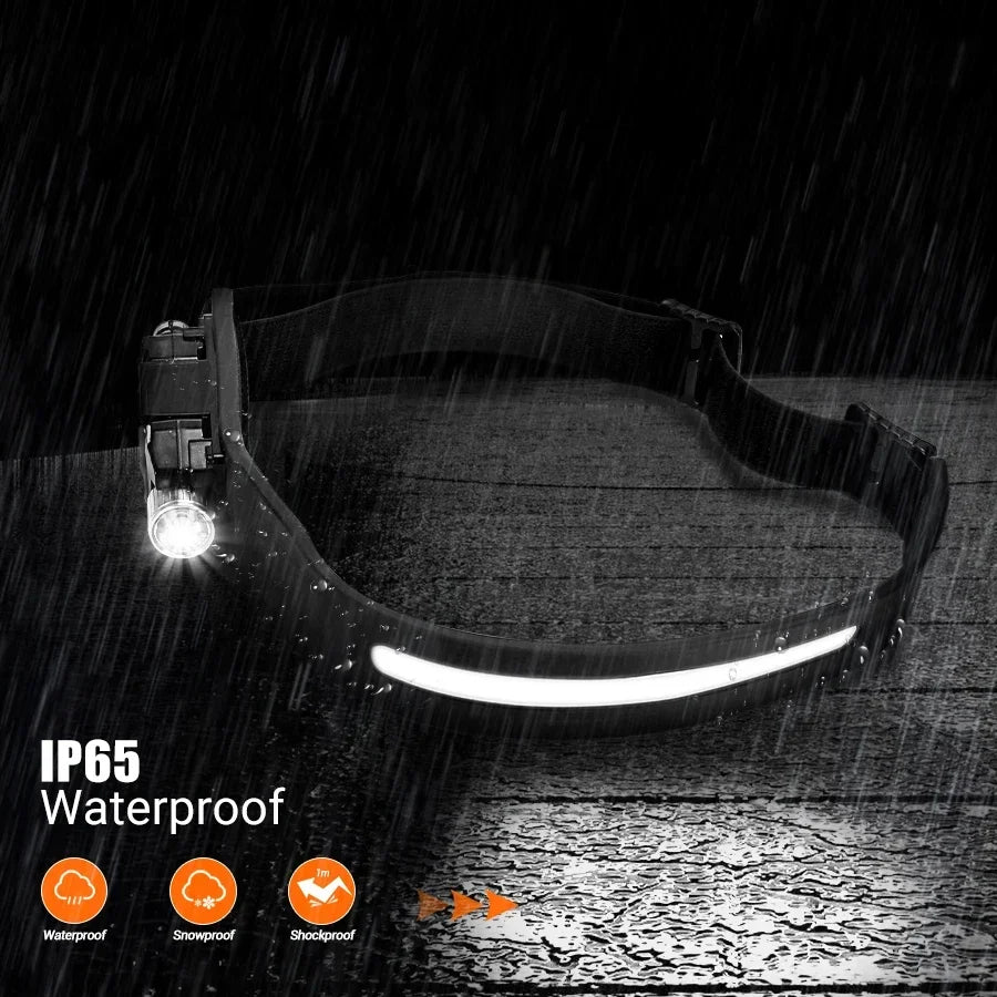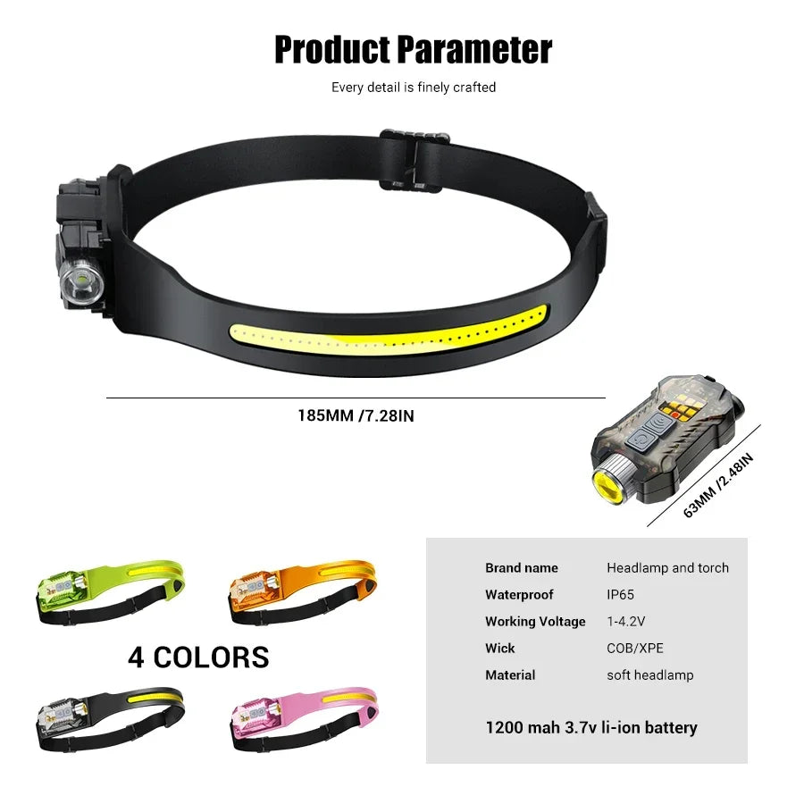 1500lm High Power LED Headlamp, USB Rechargeable COB Flashlight, 7500mAh Battery, Camping & Fishing Torch Lantern