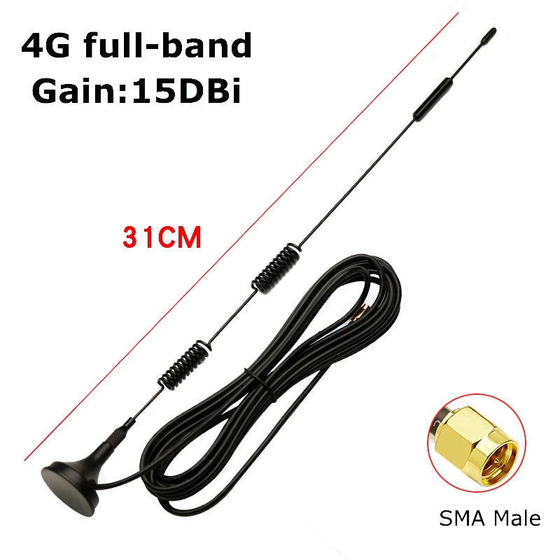 Enhance your connectivity with our 4G Full-Band Sucker Antenna, precision-engineered to deliver high-performance signal reception across a broad frequency range of 700~2700MHz. With an impressive gain of up to 15dBi, this antenna ensures optimized signal strength and reliability. Crafted from quality RG174 cable material, the 3-meter cable provides flexibility in setup, while the SMA male and TS9 connectors offer versatile compatibility with multiple devices.