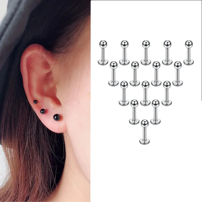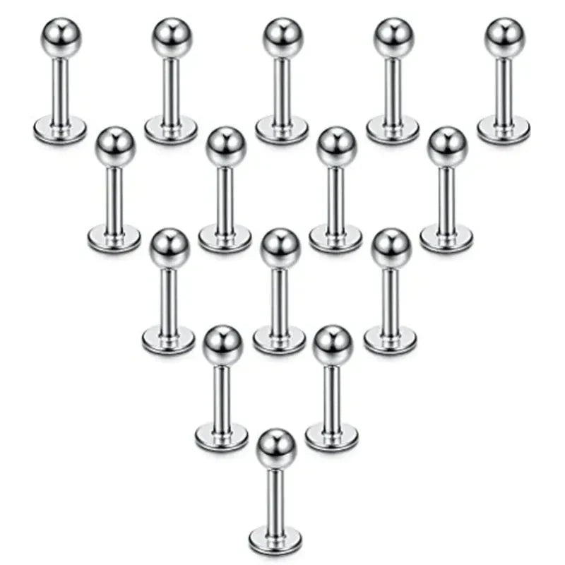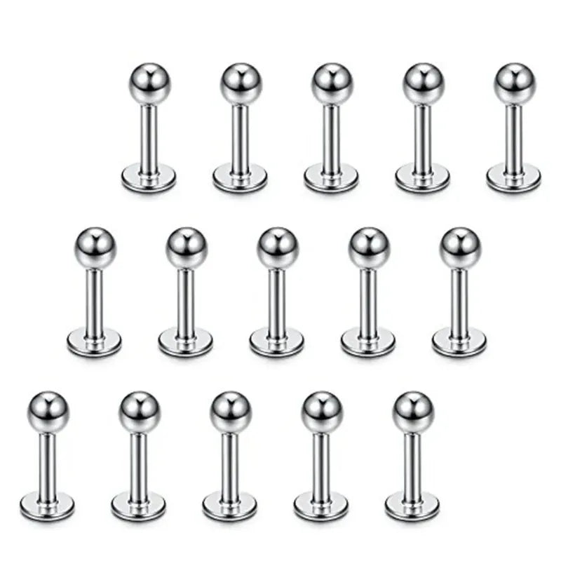 15pcs 16g Stainless Steel Lip Ring Set, Labret Nose Studs, Monroe, Cartilage, Tragus, Helix Earrings 6-12mm