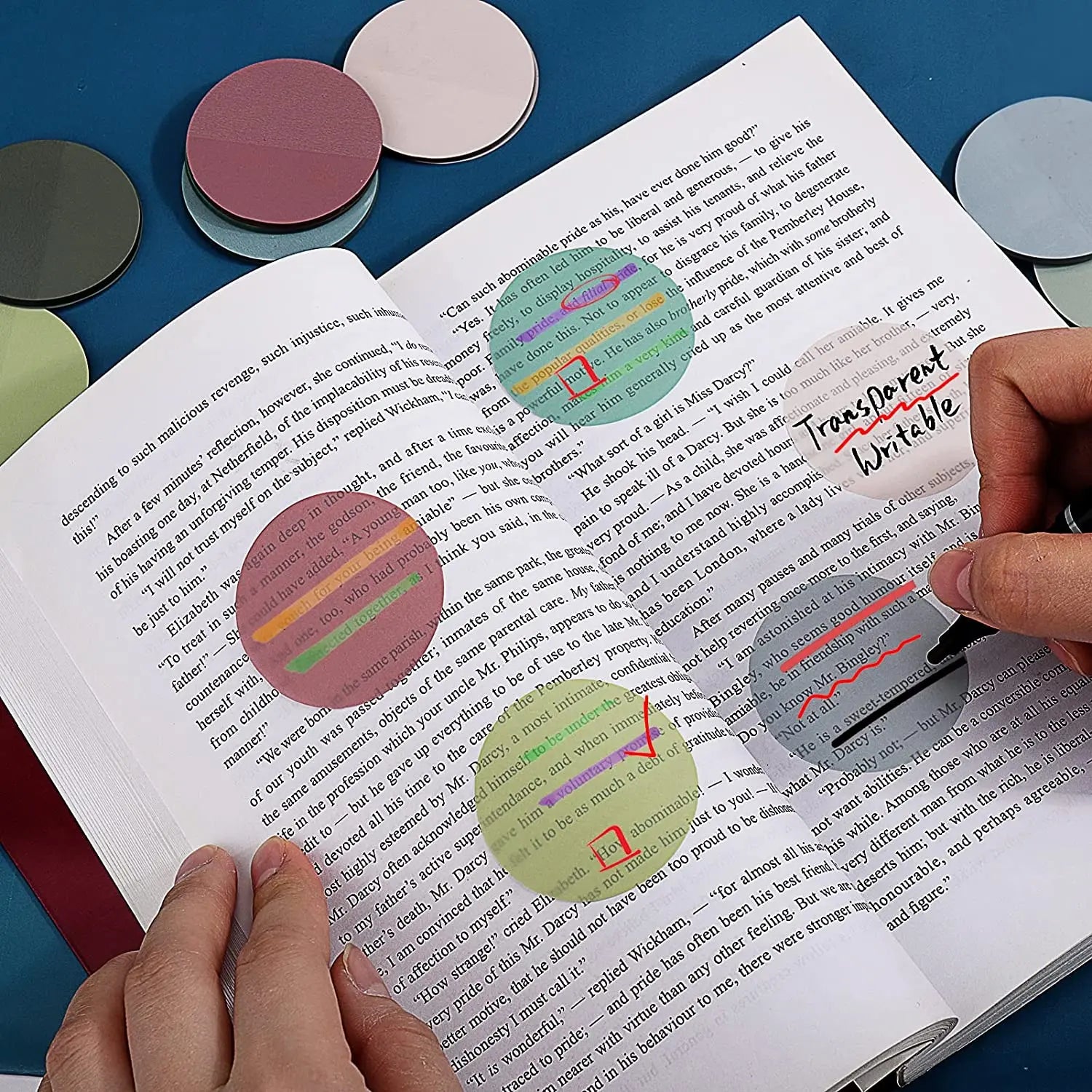 160pcs Transparent Round Sticky Tabs, Waterproof Sticky Notes, Page Flags, Book Markers, Stationery Supplies