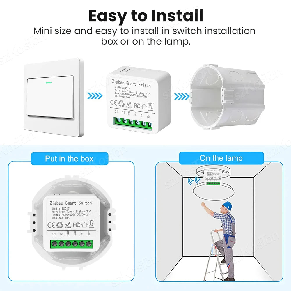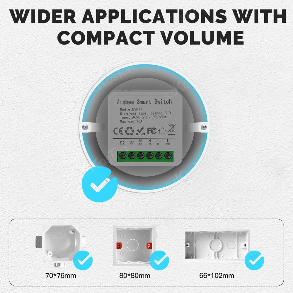 Elevate your home's intelligence with this compact, DIY smart switch, perfect for a range of switch boxes, including the smallest EU standard ones. Seamlessly automate your home appliances using an app on your smartphone or tablet, or control them through voice commands. Manage devices effortlessly, whether remotely via your phone or directly from the wall.