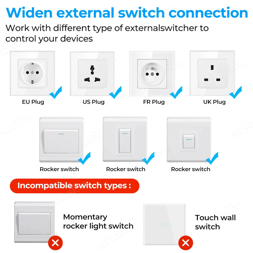5. Two-Way Control: Supports rocker light switches for versatile control. Retains manual control for older switches after installation.