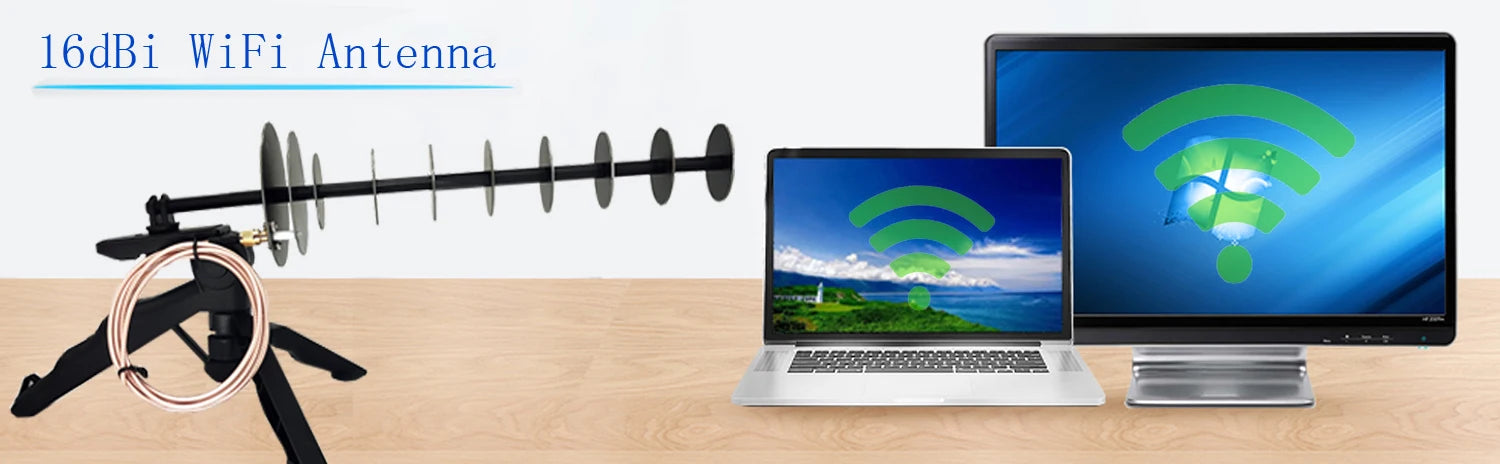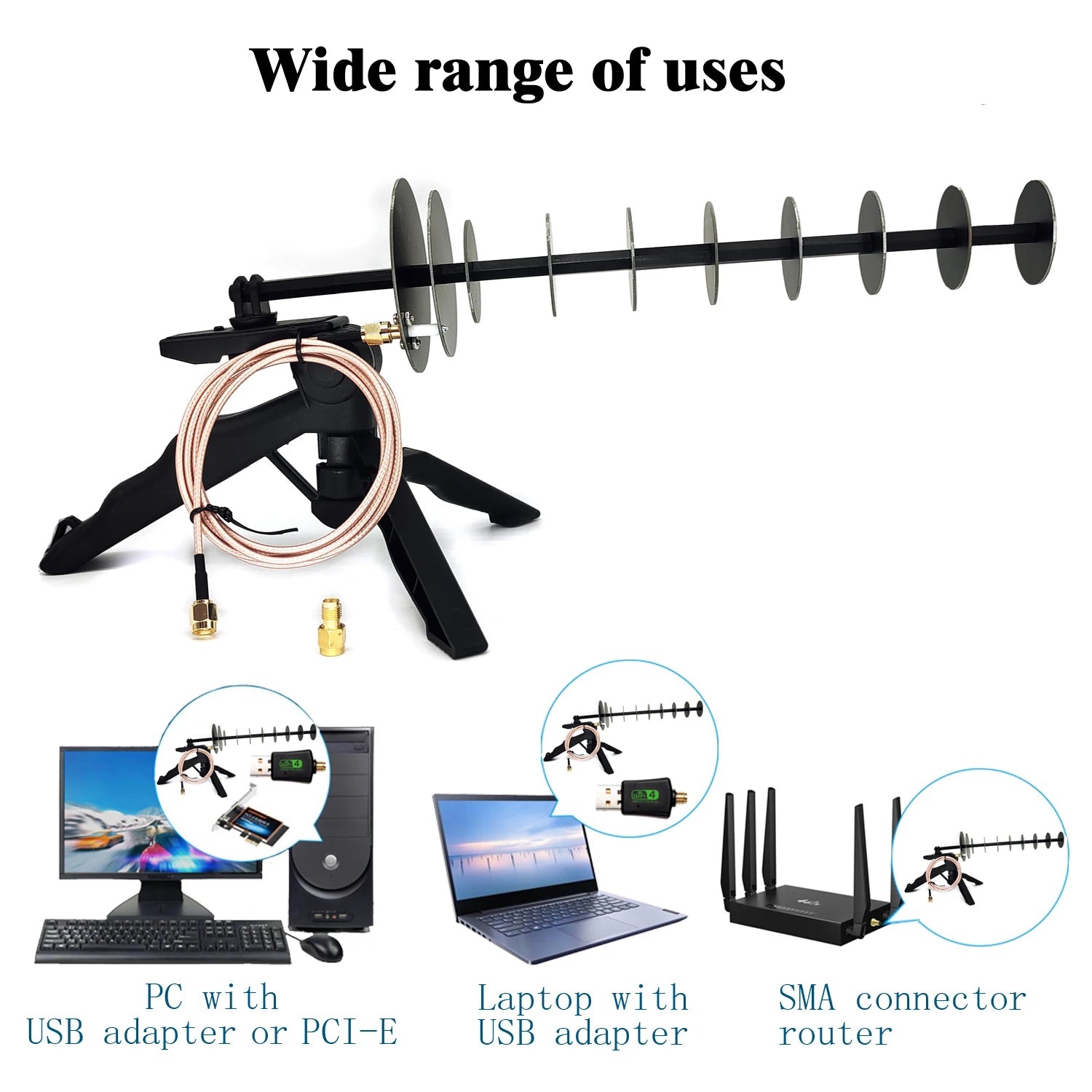 16dBi 2.4GHz WiFi Yagi Directional Antenna for Enhanced Signal, USB Wireless Network Card, PCIe Adapter for PC/Desktop/Notebook