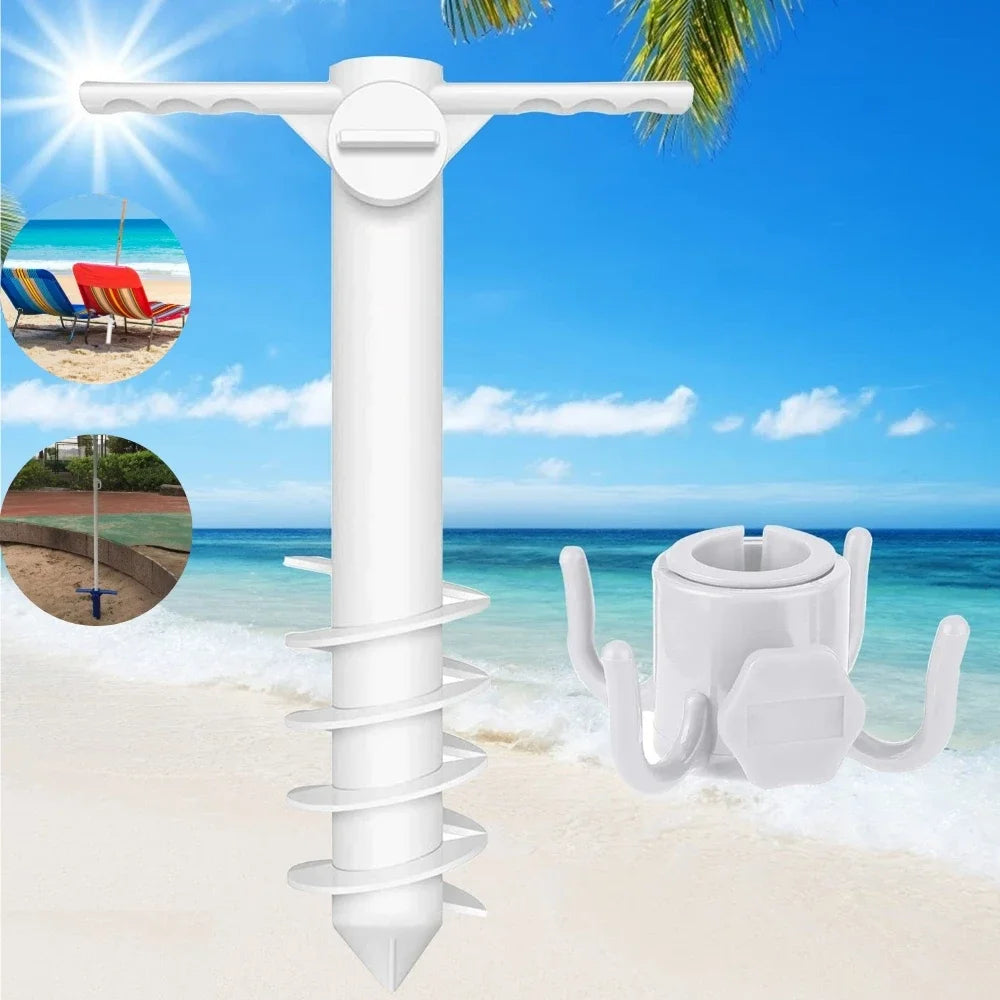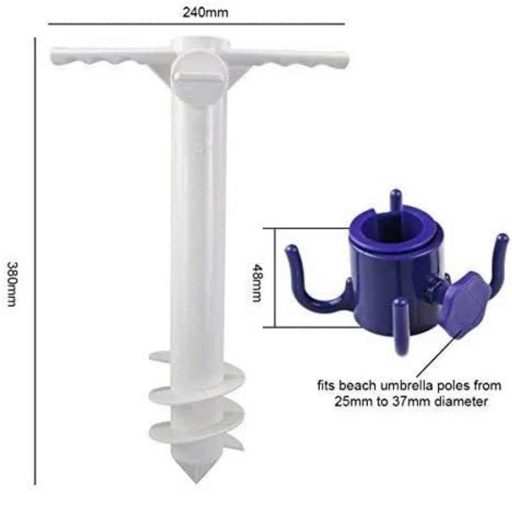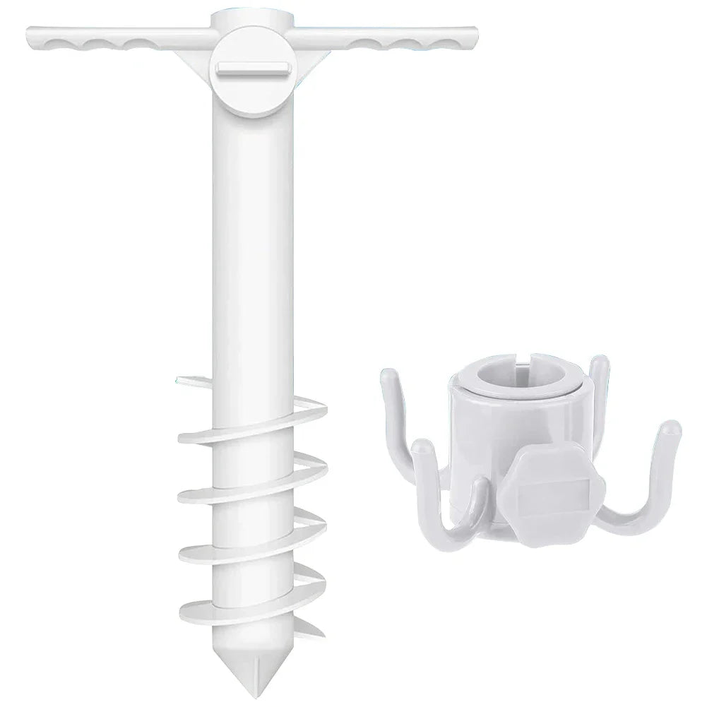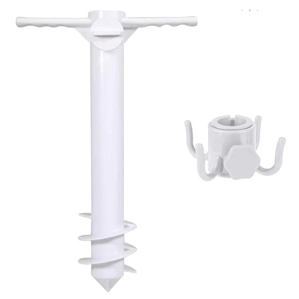 Beach Umbrella Ground Anchor Stand with Hook Inserts - Spiral Plug for Outdoor Travel Accessories