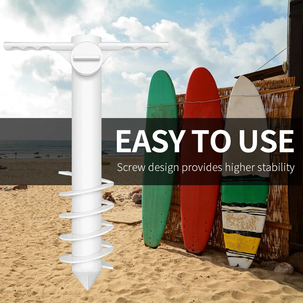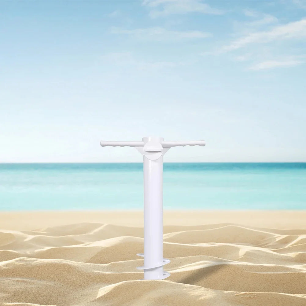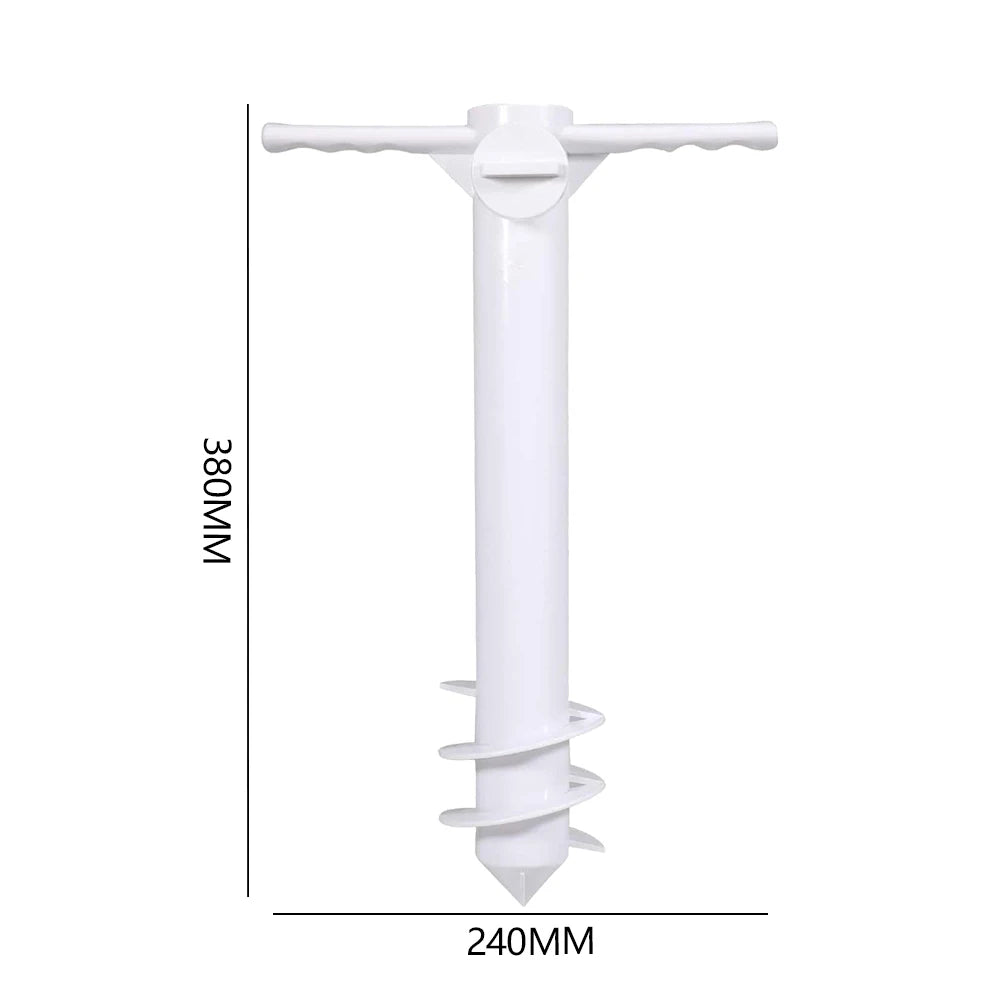 Introducing the versatile Outdoor Umbrella Base, the ideal solution for securing your beach or garden umbrella with ease. Engineered for stability and convenience, it features a spiral design that effortlessly anchors your umbrella into sand, soil, or grass, ensuring it stays put even in windy conditions. Simply screw the base into the ground, attach your umbrella, and enjoy a worry-free day outdoors.
