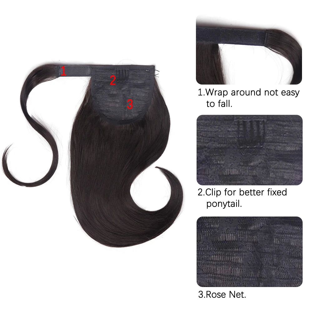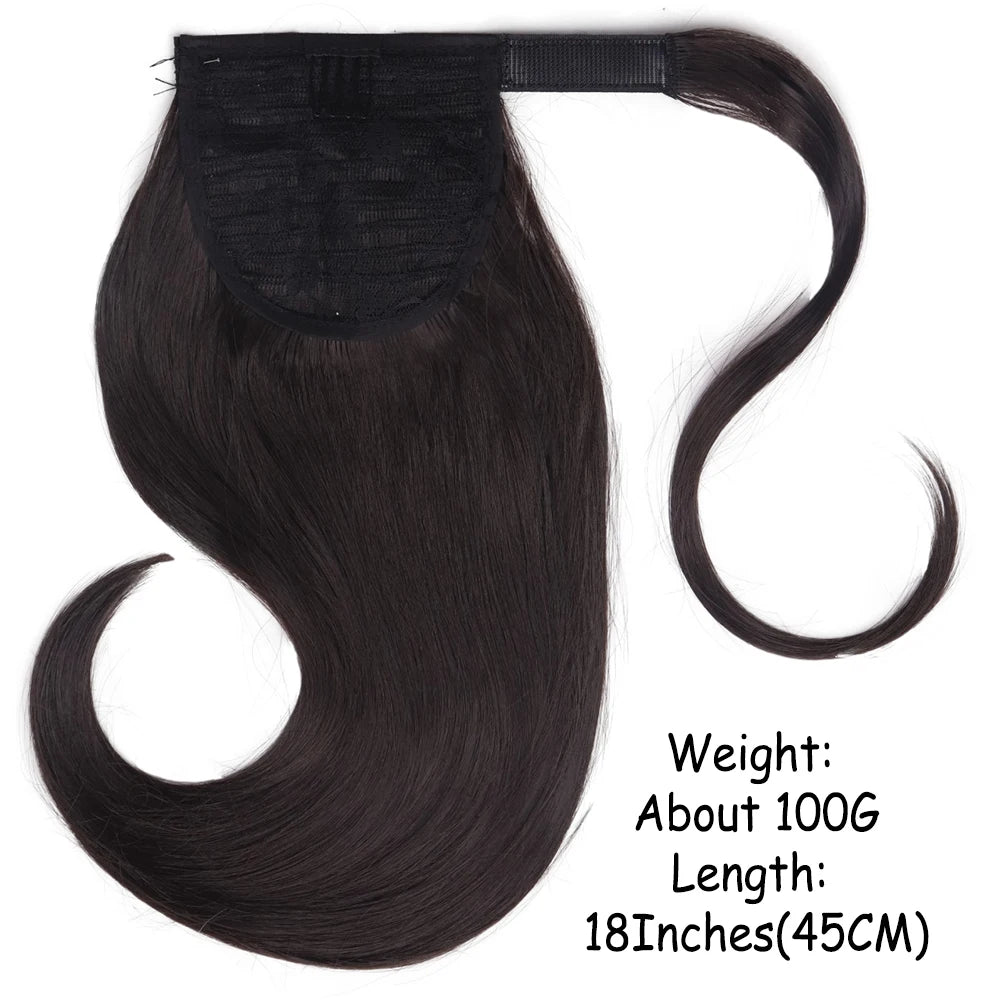 18" Synthetic Short Straight Wrap Around Clip-In Ponytail Hair Extension Black Brown Hairpiece for Women