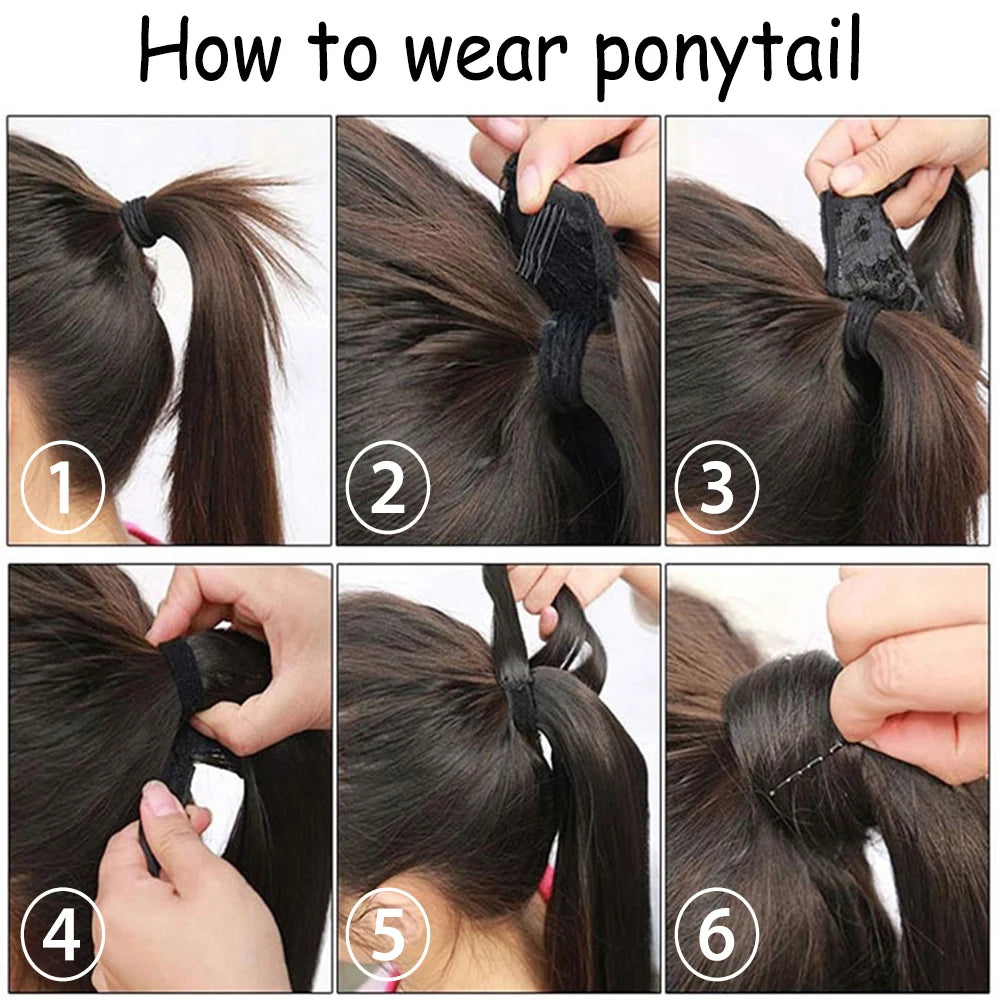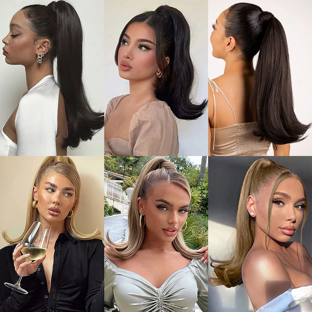 Elevate your hair game with our clip-in ponytail extension, crafted from premium high-temperature fiber that ensures a sleek, natural look. Designed to save your time, you can effortlessly achieve a stylish ponytail in just two minutes. This versatile straight style can be straightened further if desired, allowing you to customize your look. Perfect for adding volume and length, the extension seamlessly blends with your hair, thanks to its wrap-around design, making it secure and easy to attach.