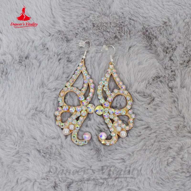 Belly Dance Earrings with Custom AB Stones for Competitions and Modern Dance