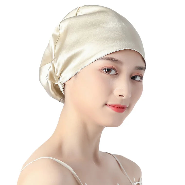 16mm Mulberry Silk Double Layer Sleep Turban Bonnet for Curly Hair Women