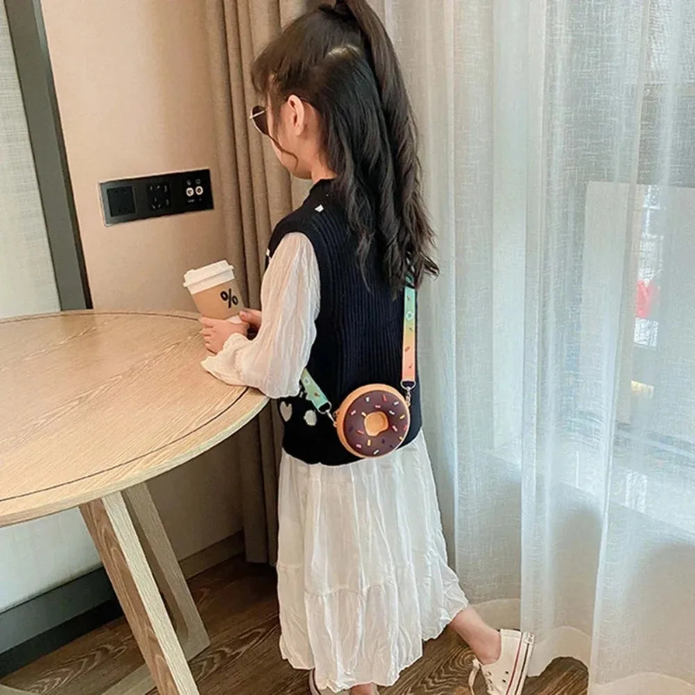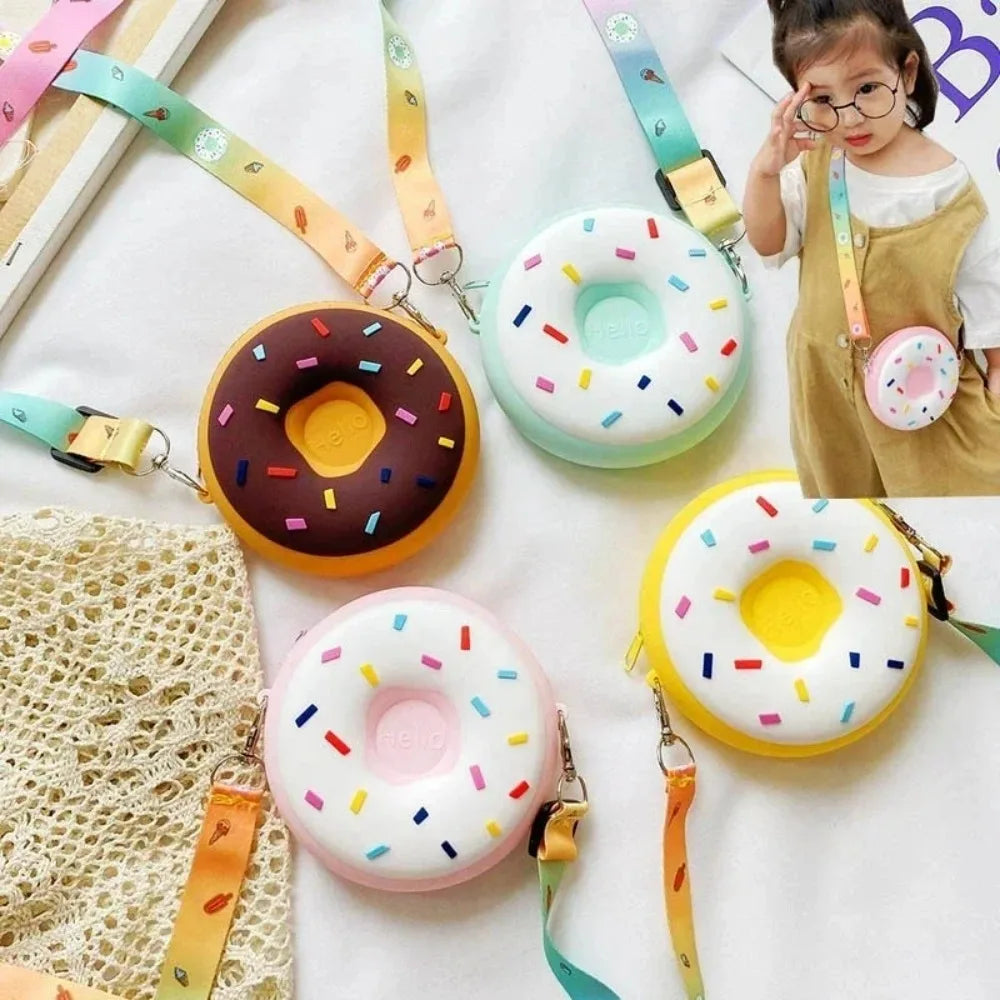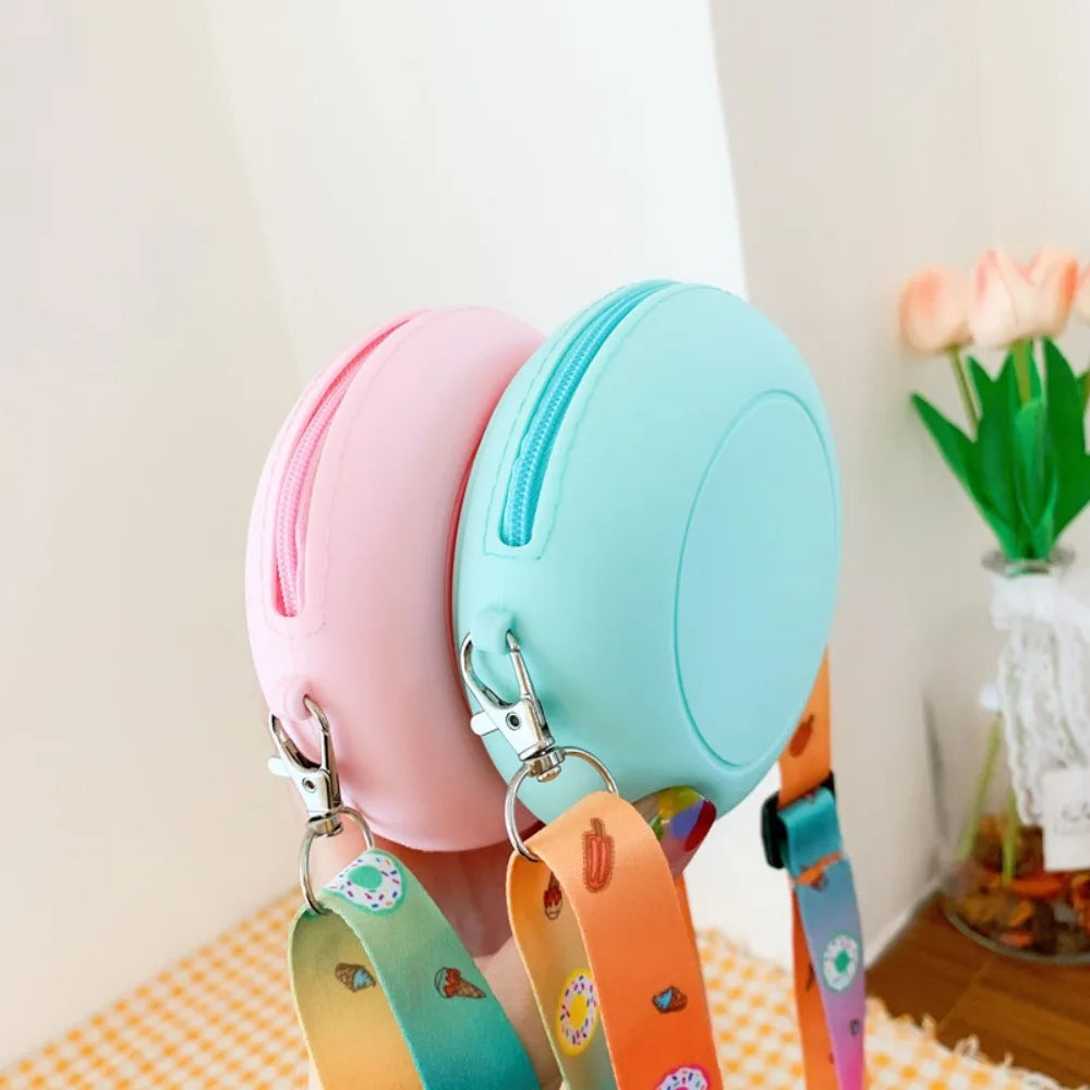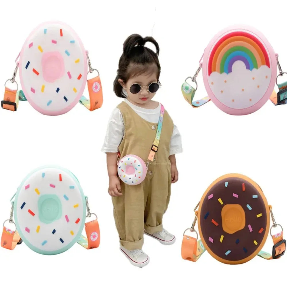 Children's Silicone Rainbow Donut Crossbody Bag Mini Handbag Coin Purse Wallet with Adjustable Strap for Baby Girls