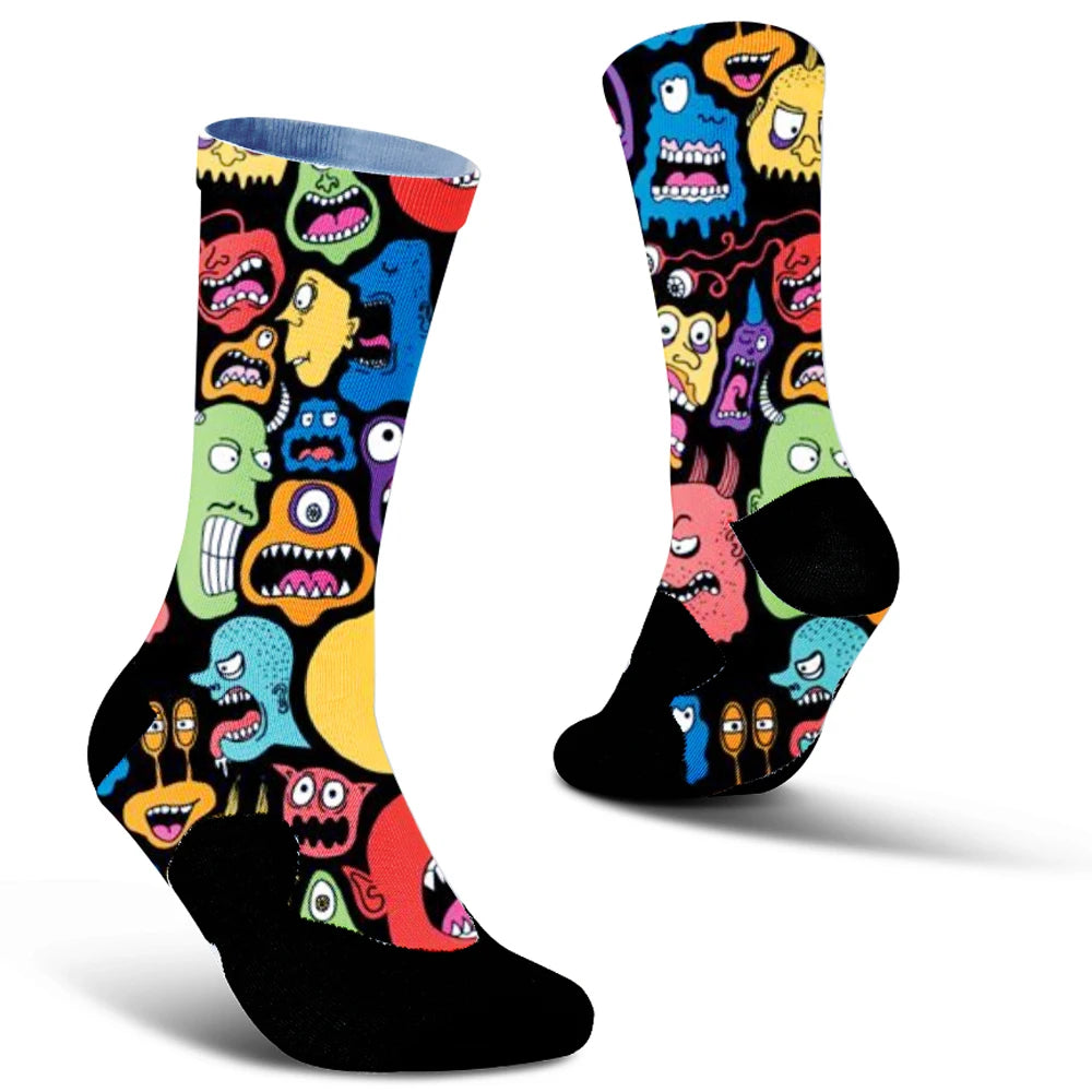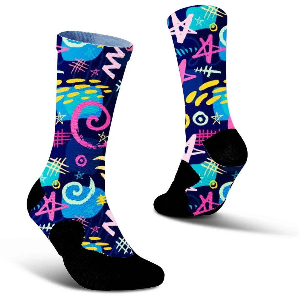 Colorful Doodle Print Thigh High Socks - Trendy Hip Hop Harajuku Style Cotton Cycling Socks
