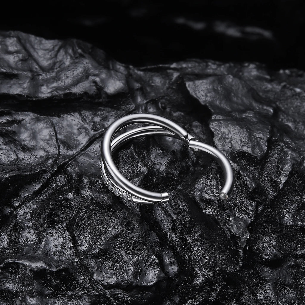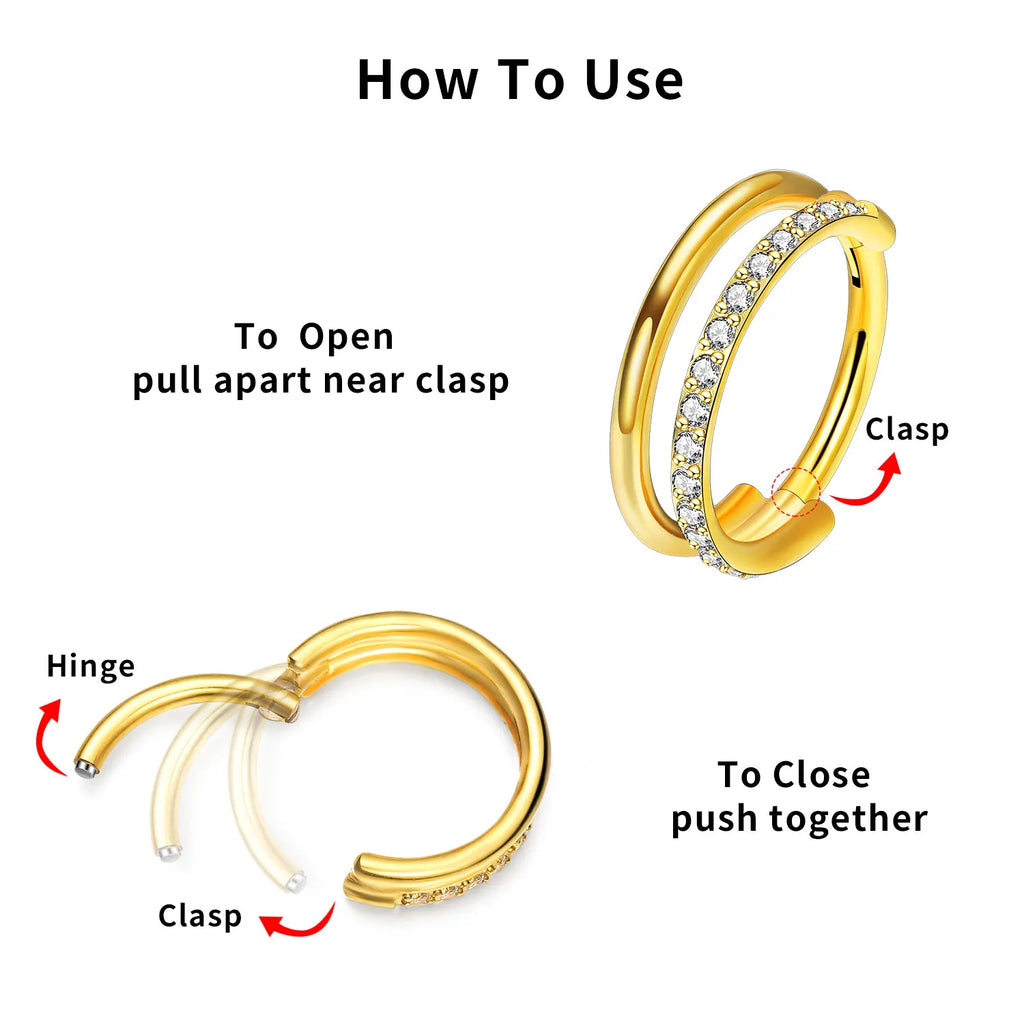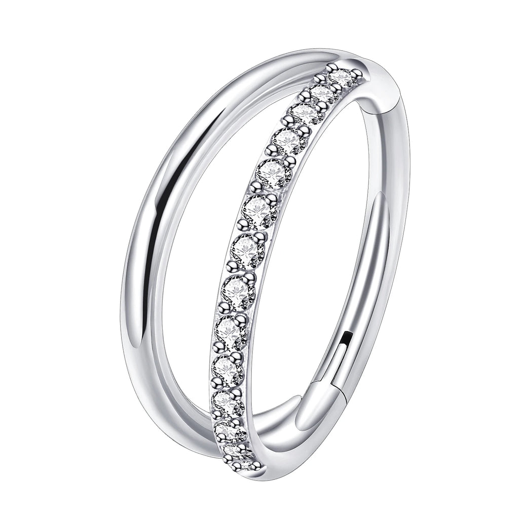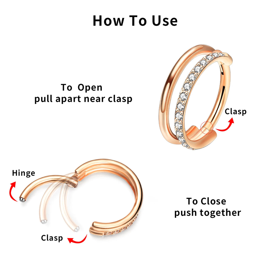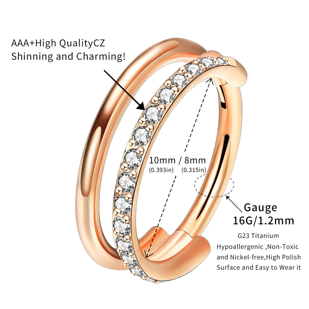16g Titanium CZ Conch Nose Ring Cartilage Hoop Daith Tragus Helix Lobe Earring Hinged Clicker Piercing Jewelry
