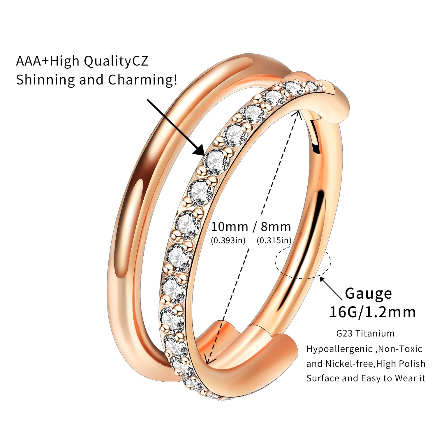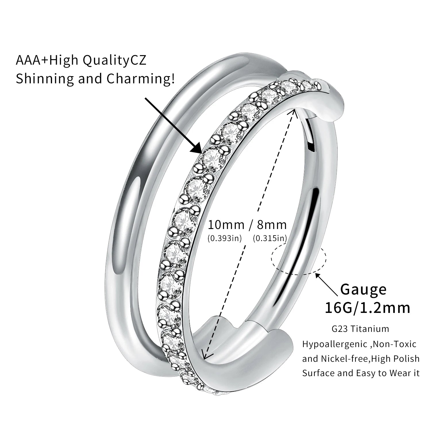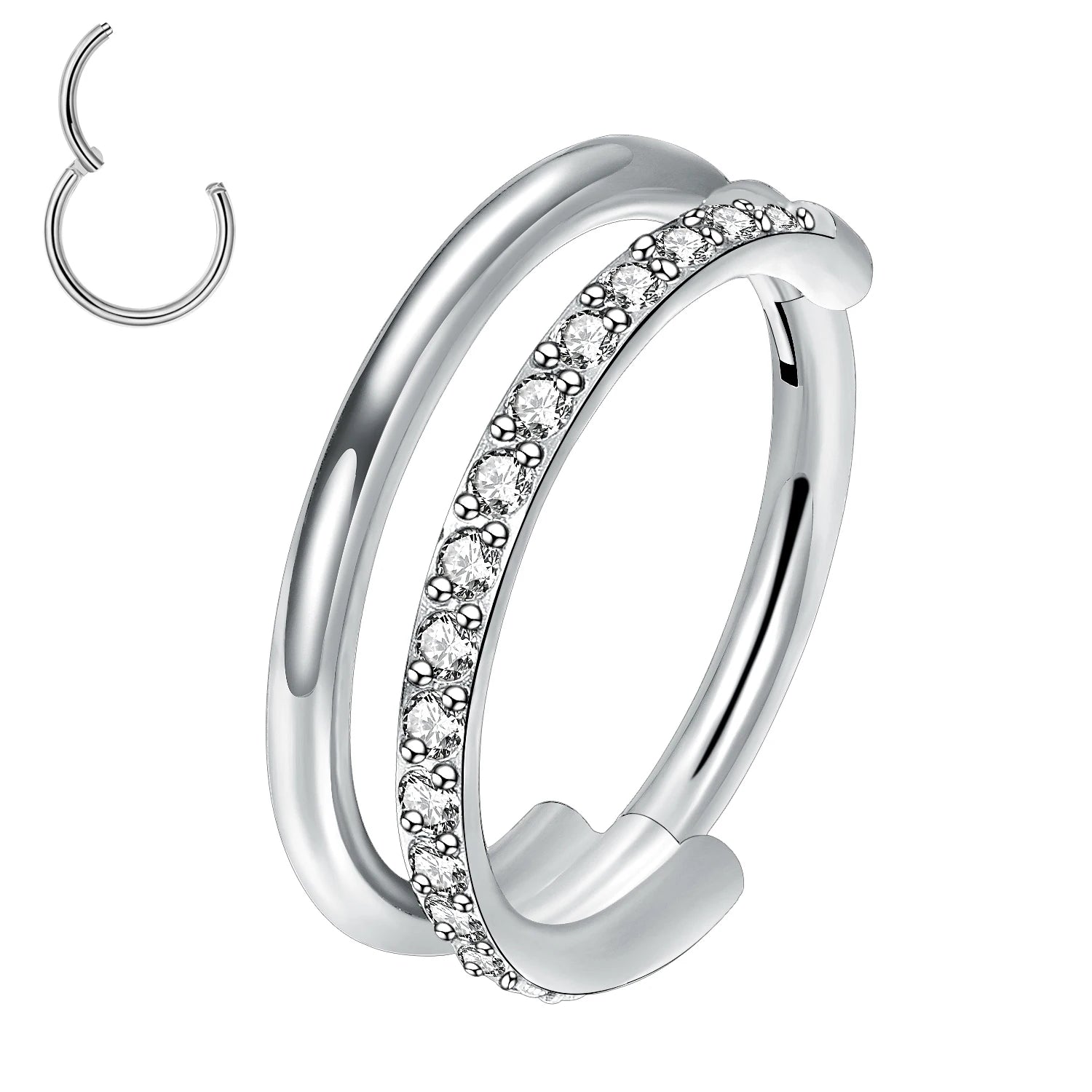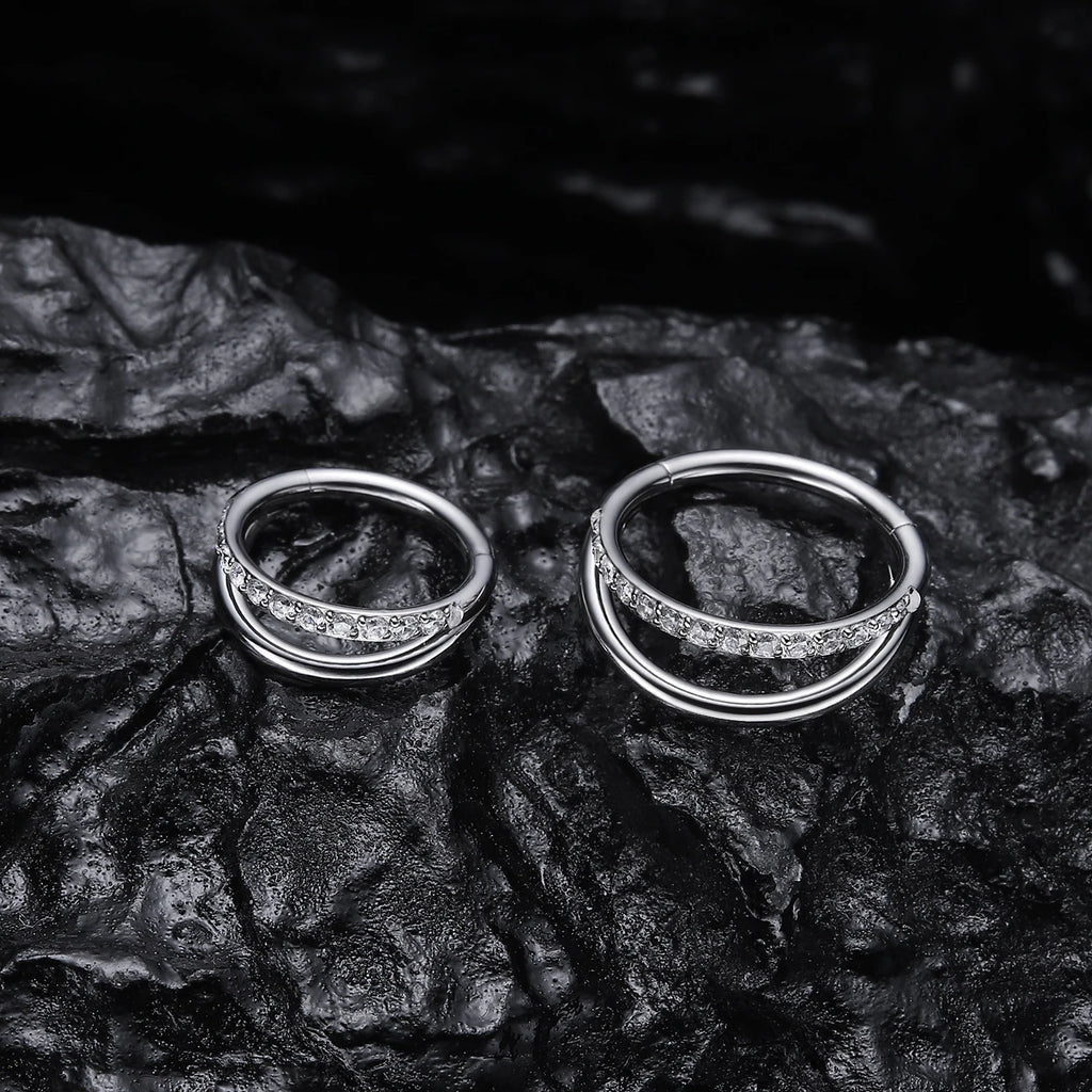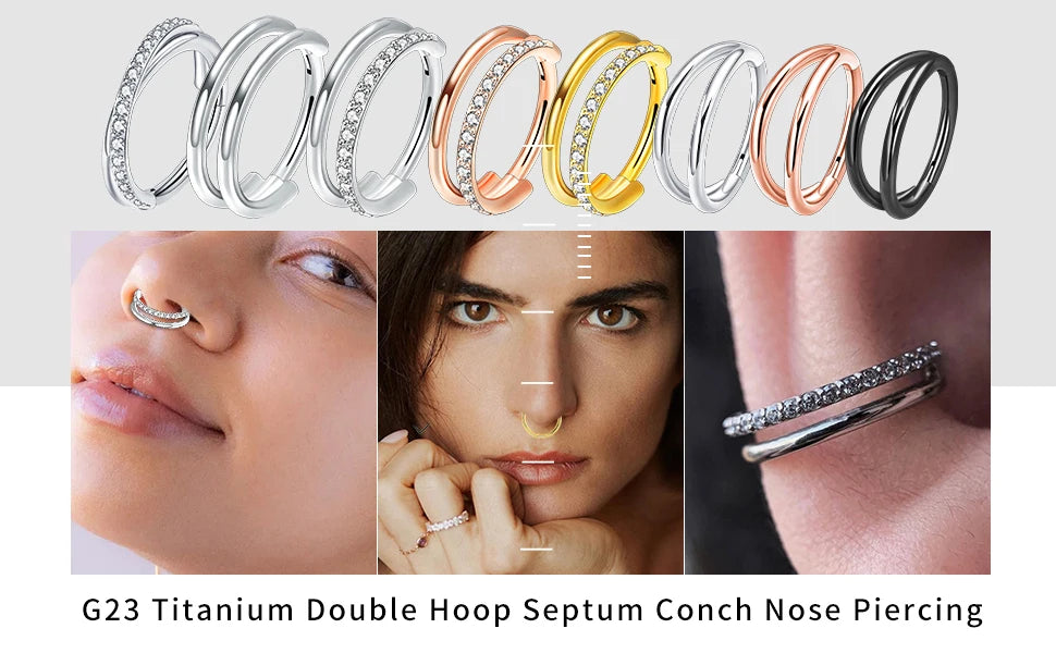 16g Titanium CZ Conch Nose Ring Cartilage Hoop Daith Tragus Helix Lobe Earring Hinged Clicker Piercing Jewelry