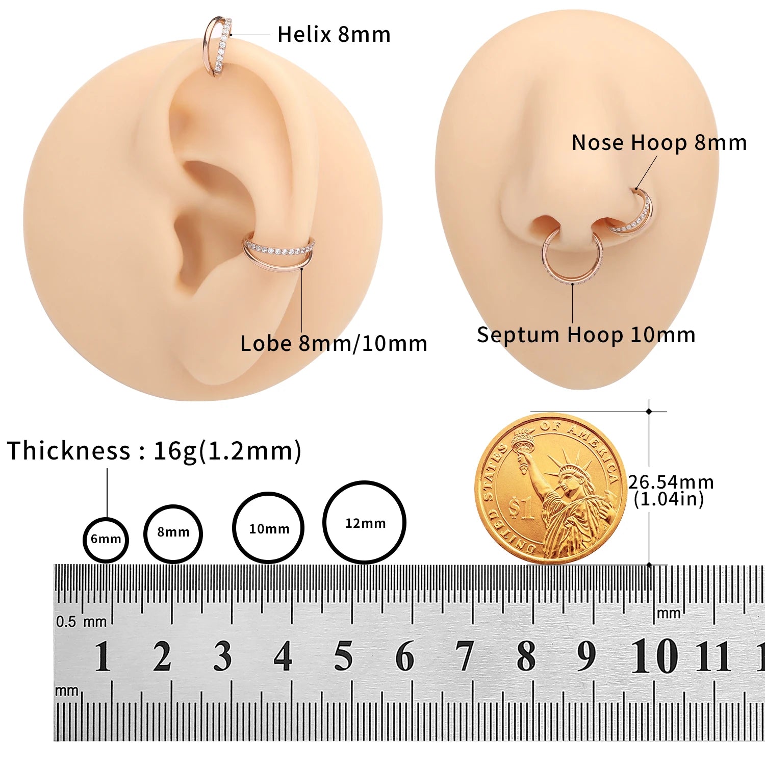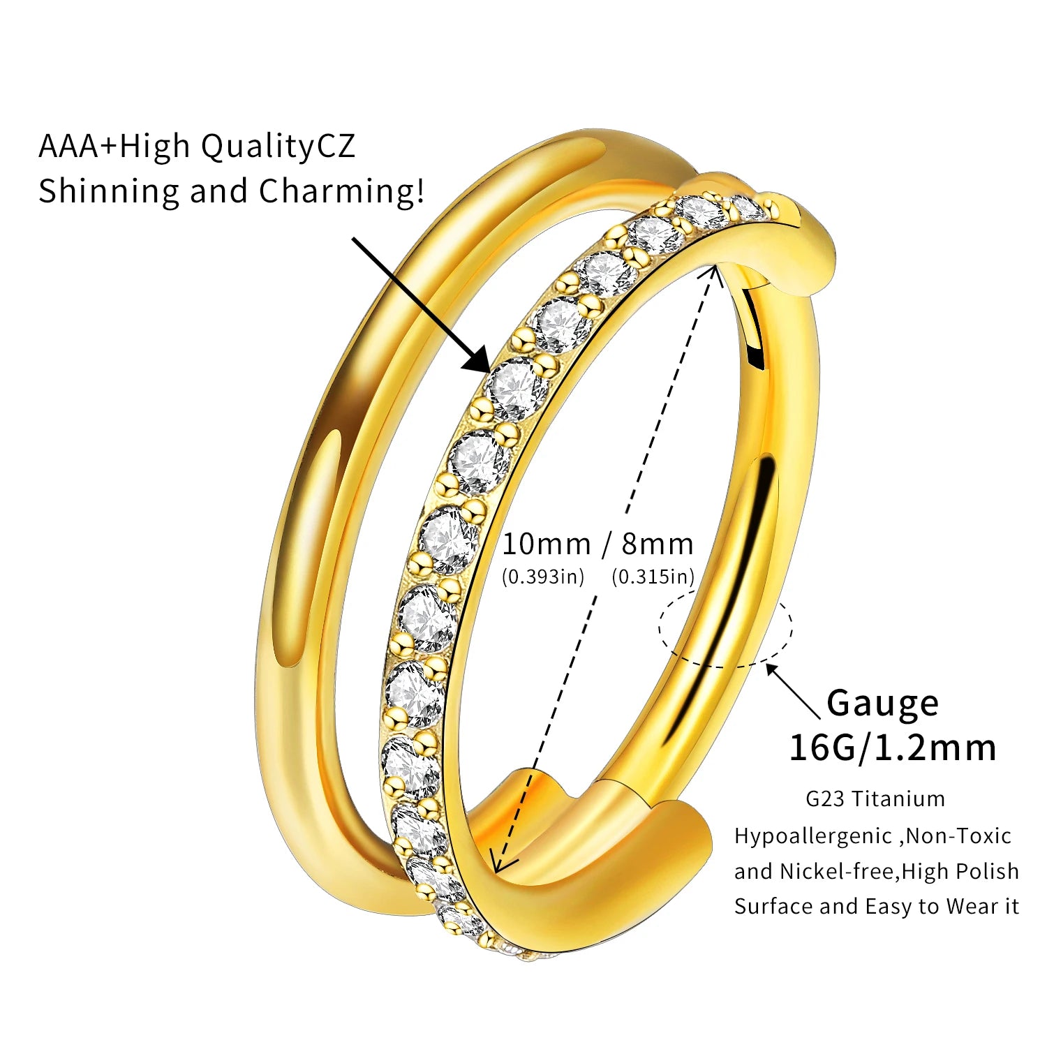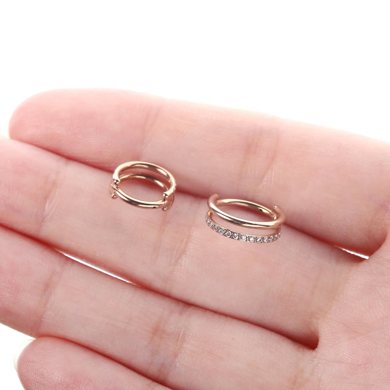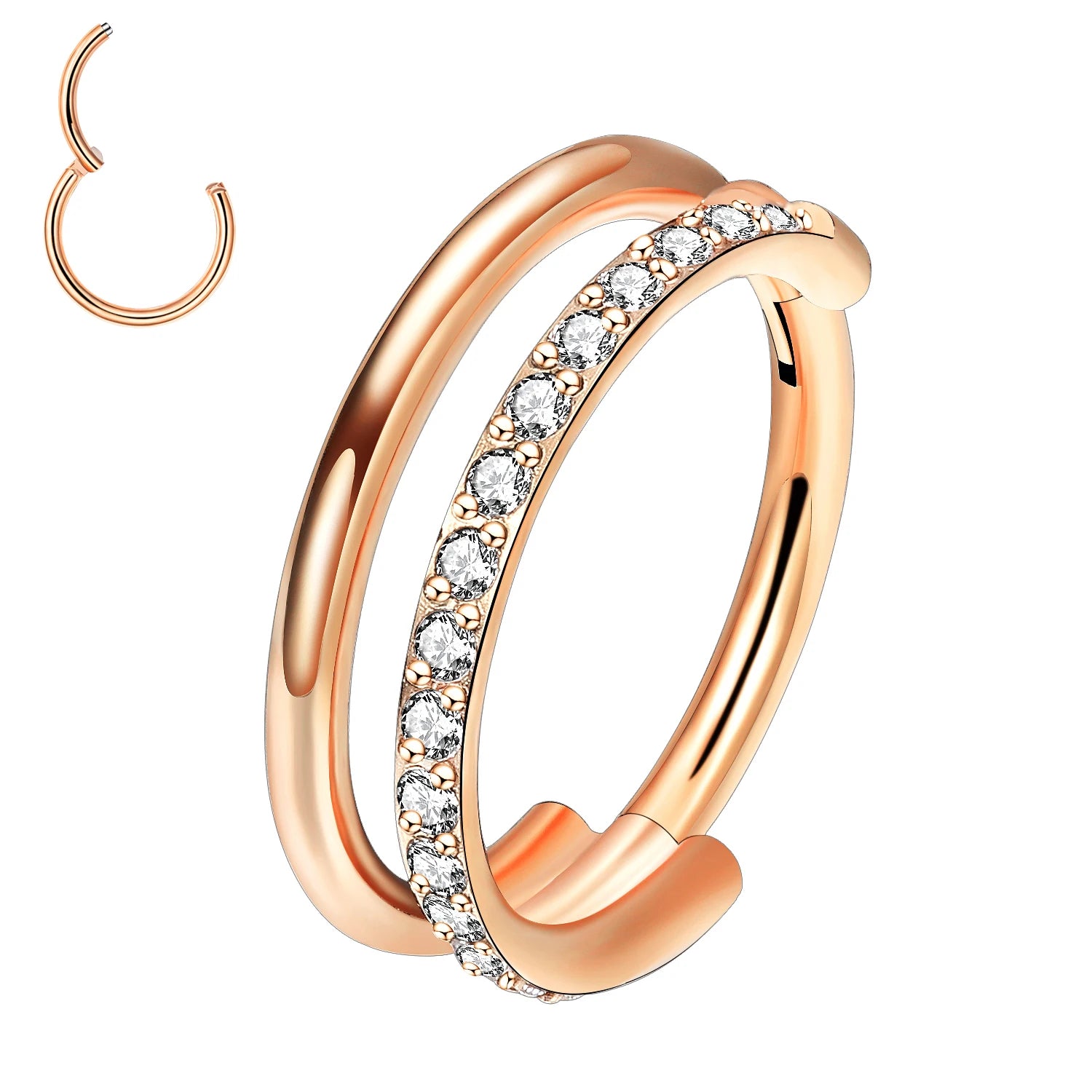 16g Titanium CZ Conch Nose Ring Cartilage Hoop Daith Tragus Helix Lobe Earring Hinged Clicker Piercing Jewelry