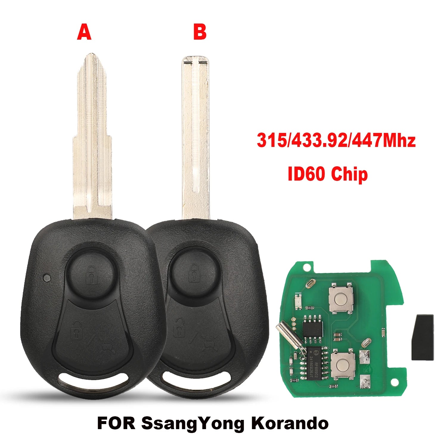 Car Remote Key 315/433/447MHz ID60 Chip for Ssangyong Actyon Kyron Rexton Korando