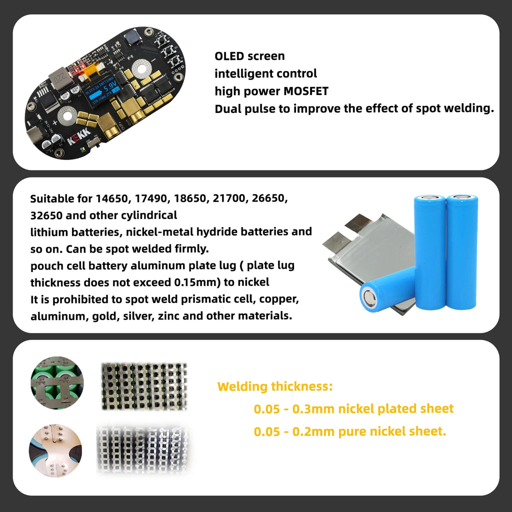 - Double Pulse Welding: Supports strong welds on 0.3mm nickel-plated and 0.2mm pure nickel sheets.