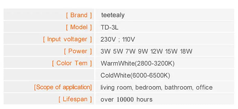 - Power options: 3W, 5W, 7W, 9W, 12W, 15W, 18W