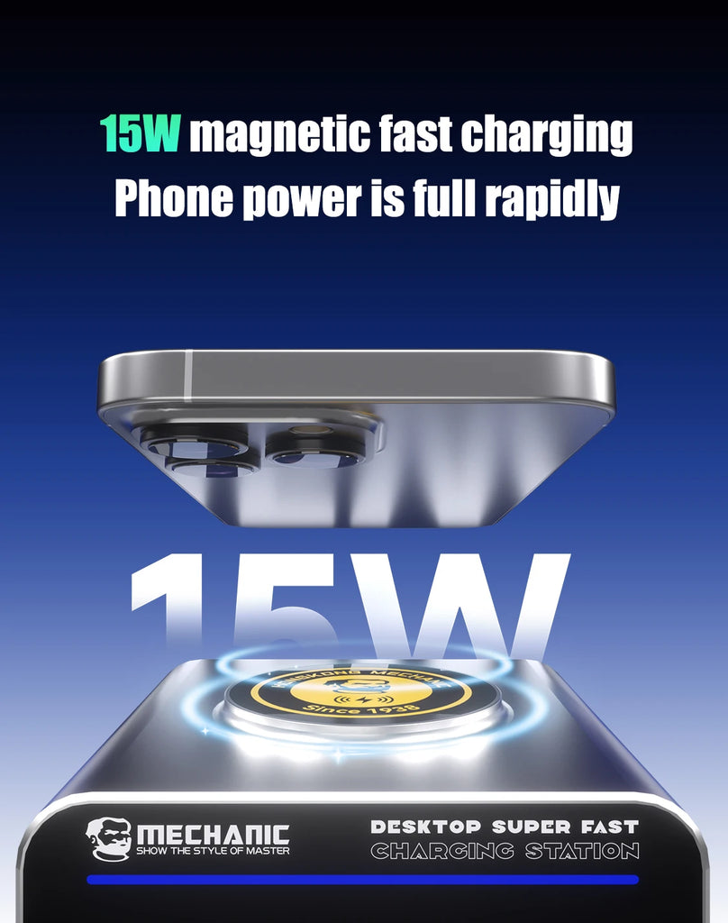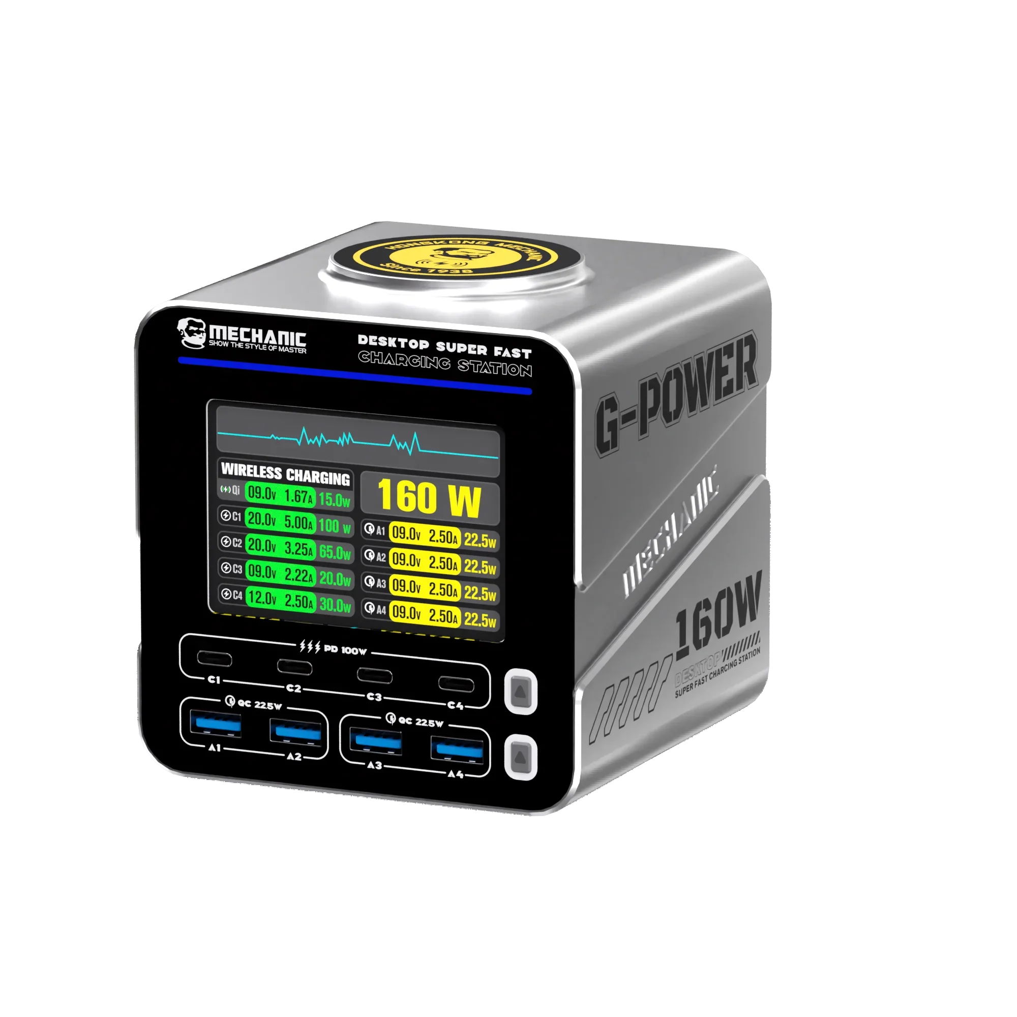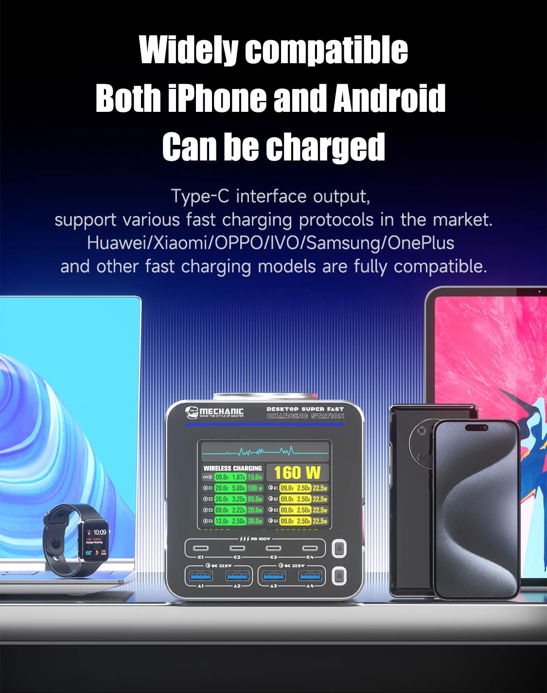 160W Desktop Charging Station w/ Smart Screen, 15W Magnetic Fast Charger for Apple & Android Devices