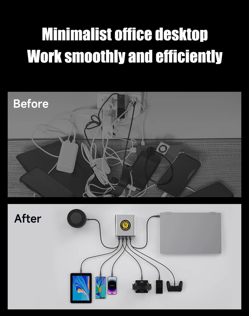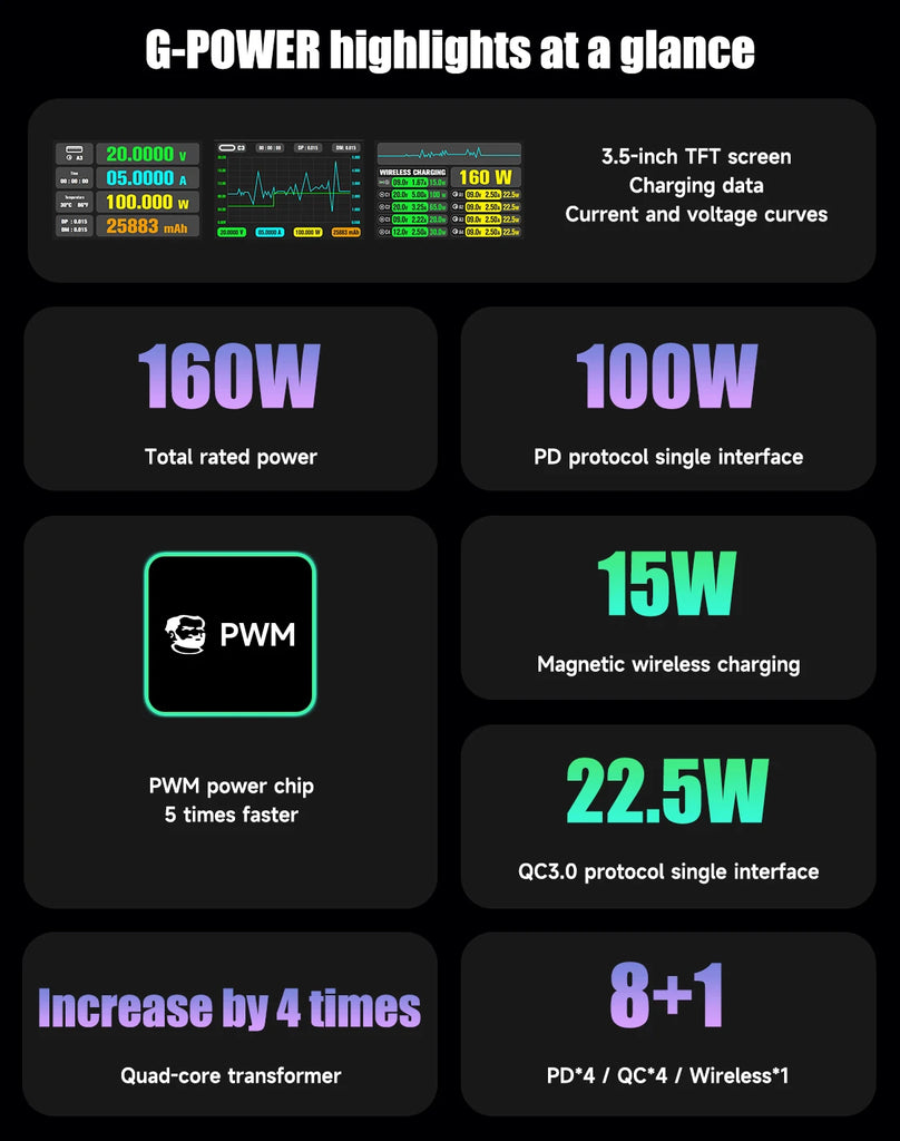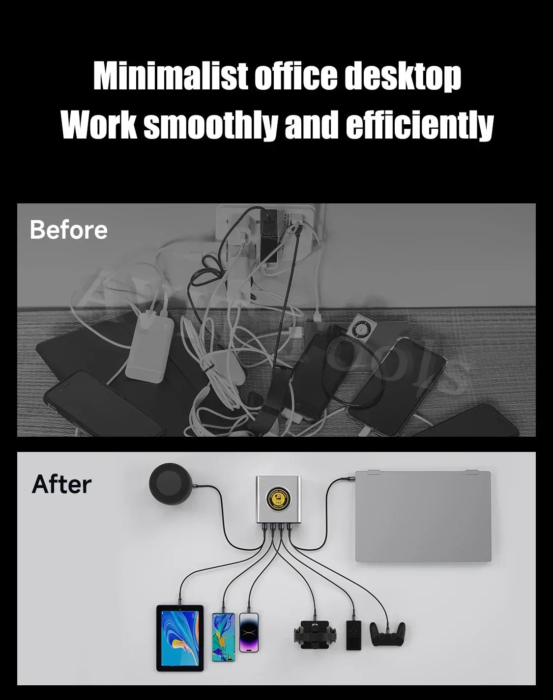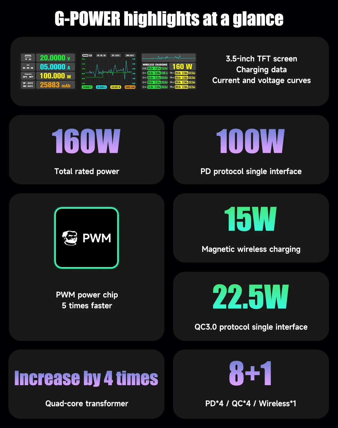 160W Desktop Charging Station w/ Smart Screen, 15W Magnetic Fast Charger for Apple & Android Devices