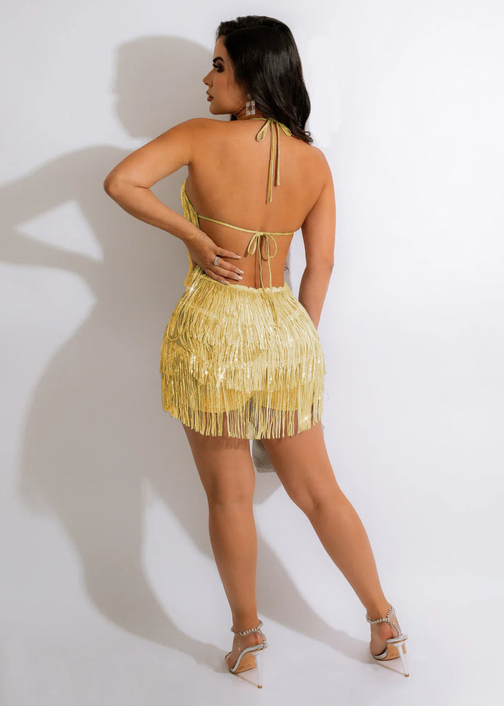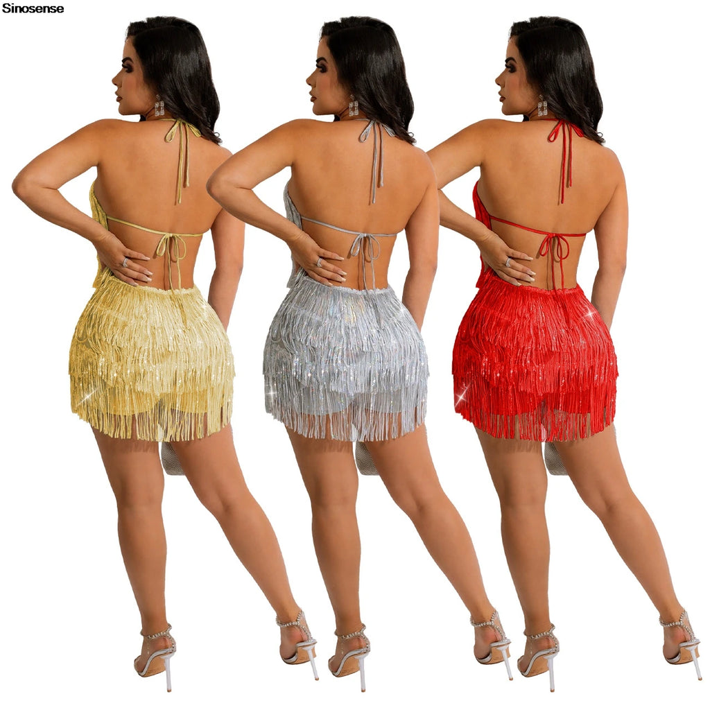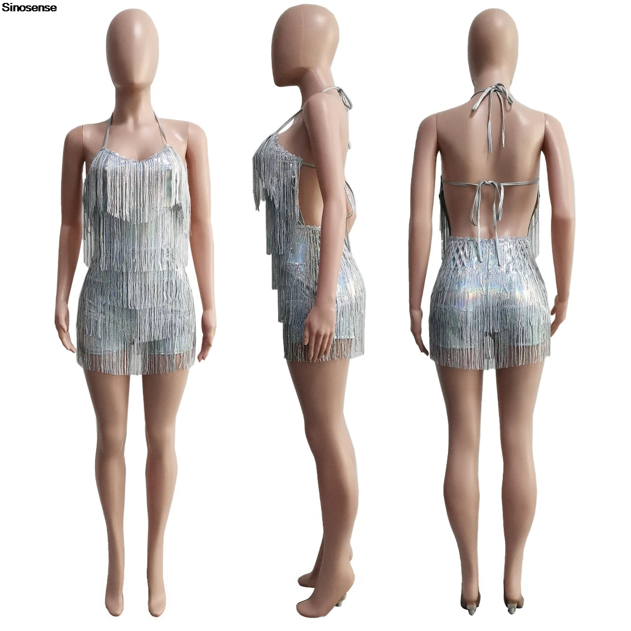 Backless Fringe Sequin Jumpsuit for Women - Sparkly Glitter Tassel Romper for Club, Party, Dance, Concerts