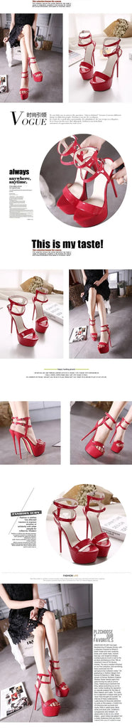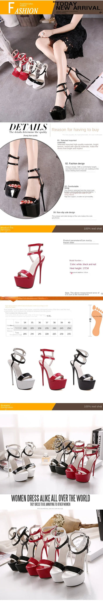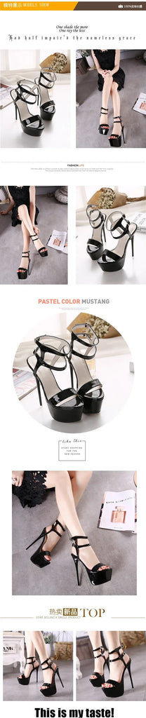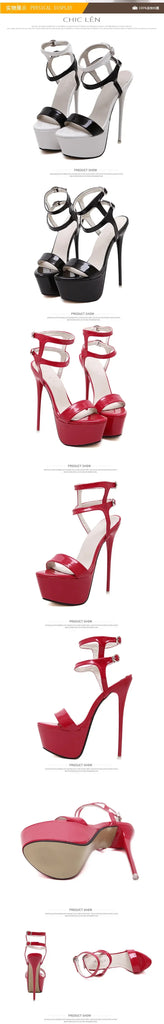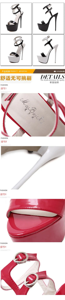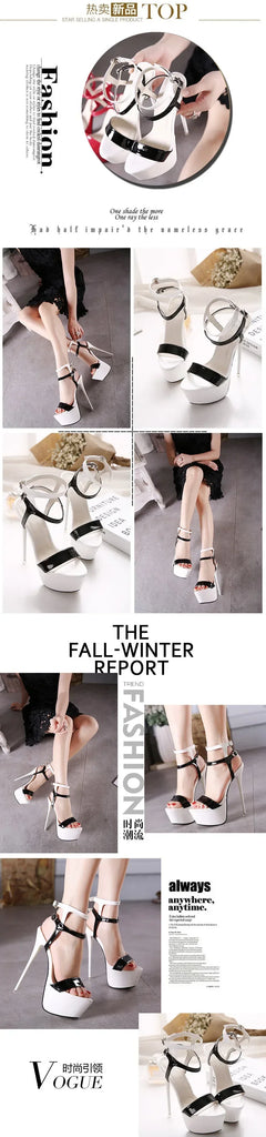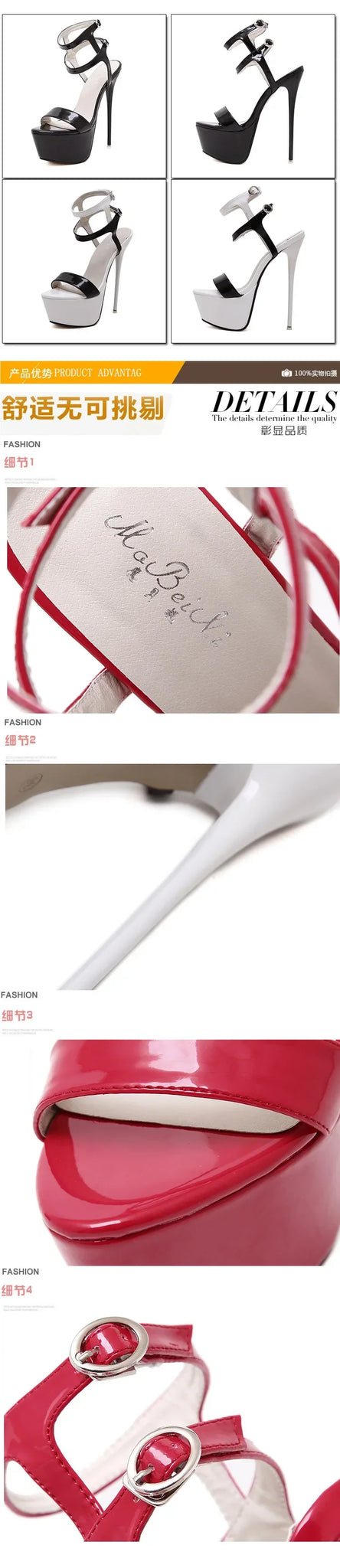 16cm High Heel Sandals for Women - Sexy Peep Toe Platform Ankle Strap Party Shoes