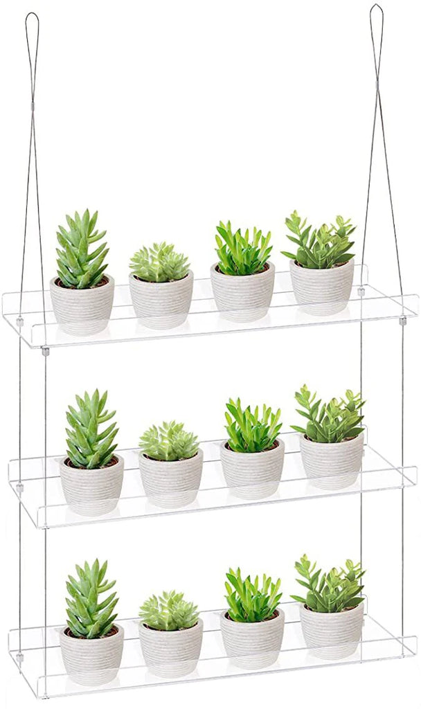 Enhance your living space with this chic, multi-layer hanging shelf, crafted from wood-based panels and designed to keep your plants and items organized. Featuring a transparent acrylic display, this shelf offers a modern and elegant touch, making it ideal for showcasing your favorite plants or crafts.