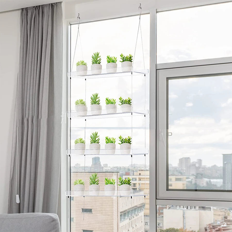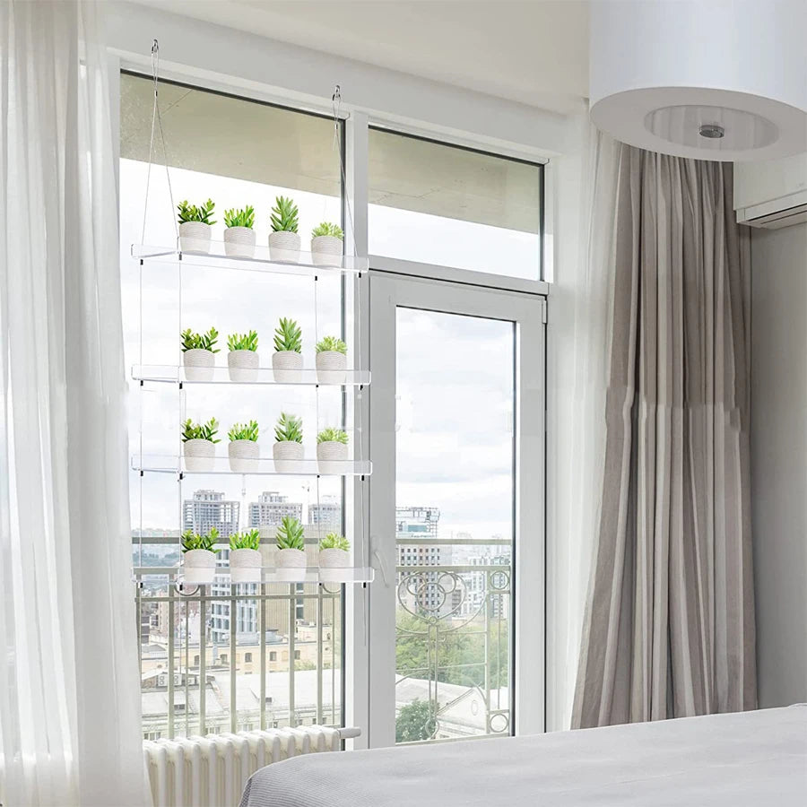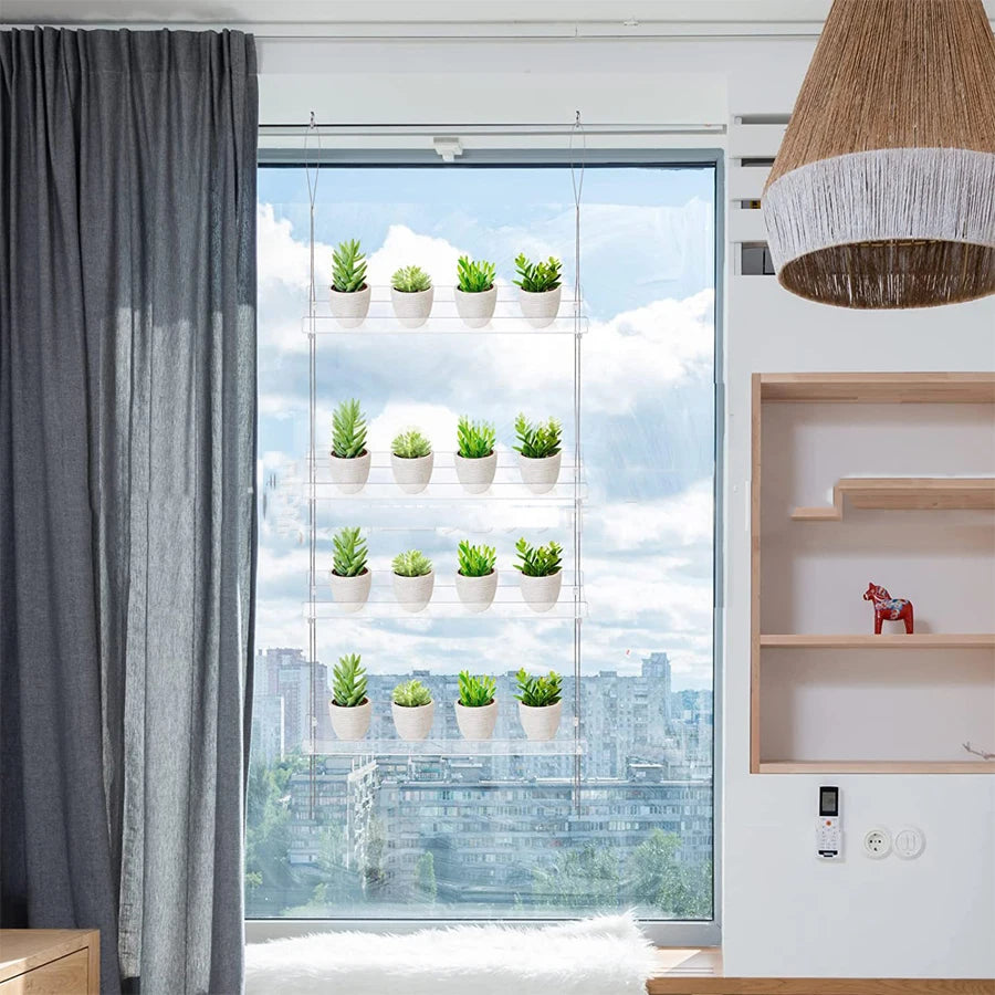 Its unique multi-layer structure efficiently houses multiple pots, depending on their size, providing ample space to curate your collection. The shelf is easy to install, using two durable hooks to securely anchor it to your window or wall, ensuring it stays firmly in place.
