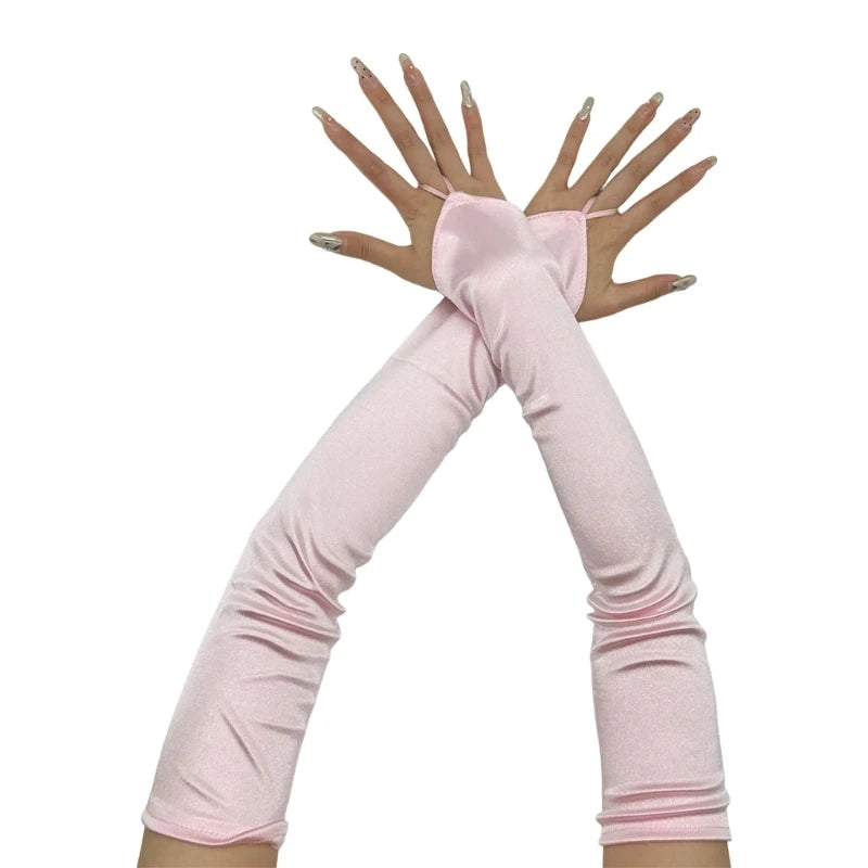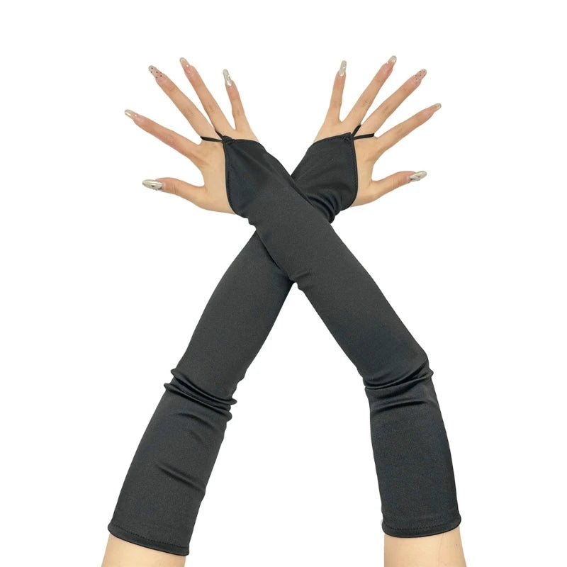 Elevate your style with these elegant elbow-length gloves, perfect for any sophisticated occasion. Crafted from luxurious satin, these gloves offer a soft, breathable, and comfortable fit, making them an ideal choice for evening events, operas, proms, and themed parties. Designed to add a touch of classic charm and unique flair to any outfit, they are versatile and fashionable for any woman seeking to make a statement.