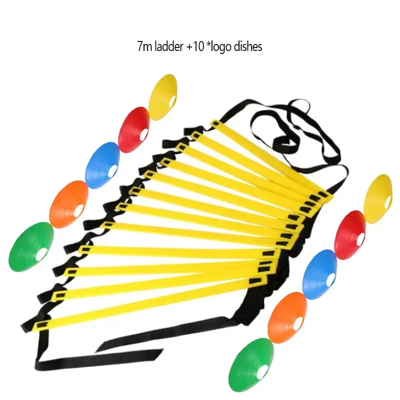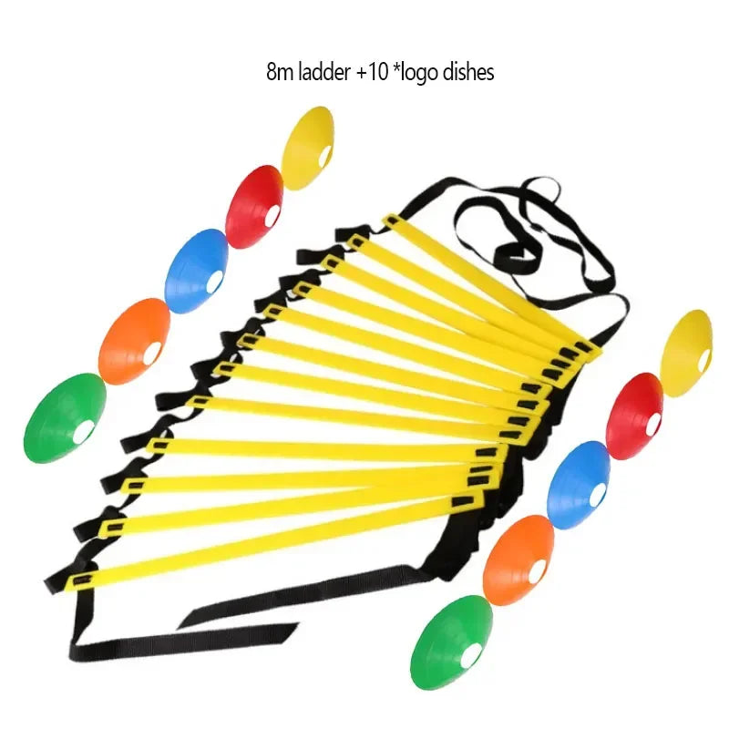 Elevate your training sessions with the versatile Flexibility Agility Ladder, designed to boost speed, agility, and coordination. This essential training tool is perfect for sports enthusiasts and is crafted from durable PP material. With lengths ranging from 2m to 10m, it caters to a variety of training needs. The set includes 10 logo dishes, making it ideal for activities like football, basketball, skating, and more.
