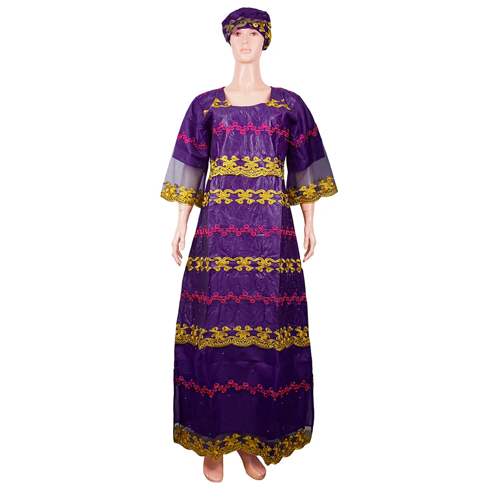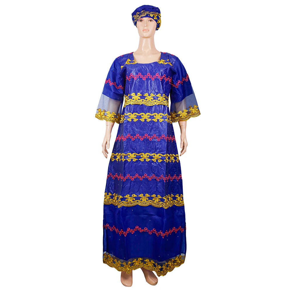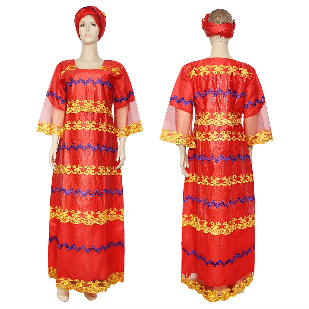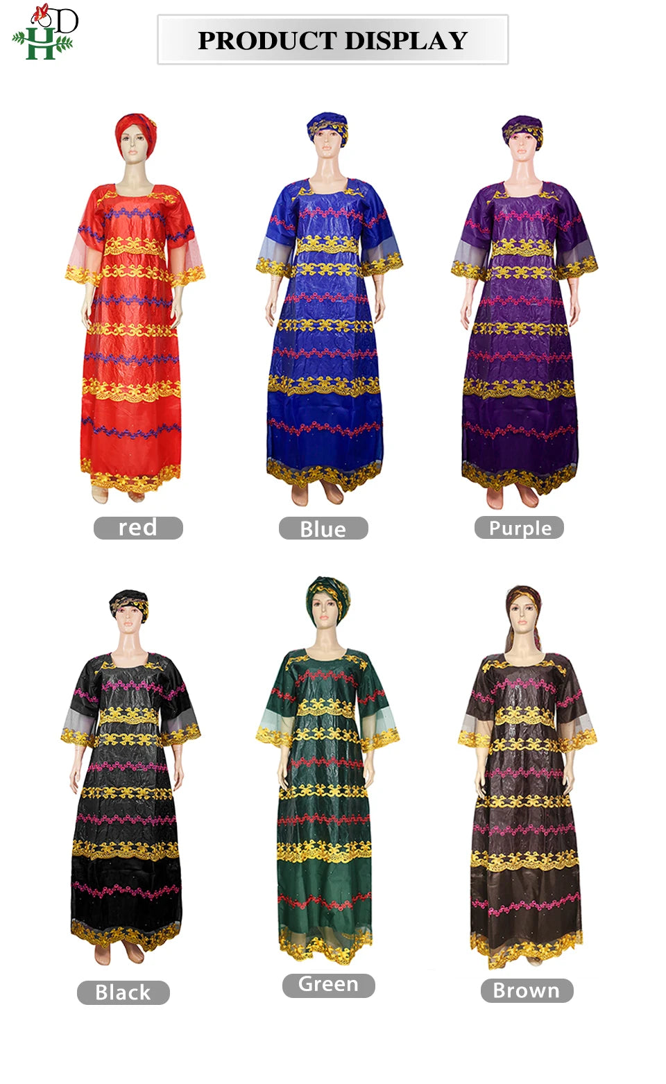 African Embroidery Bazin Riche Dress & Turban – Lace Patchwork Vestido For Wedding Ramadan