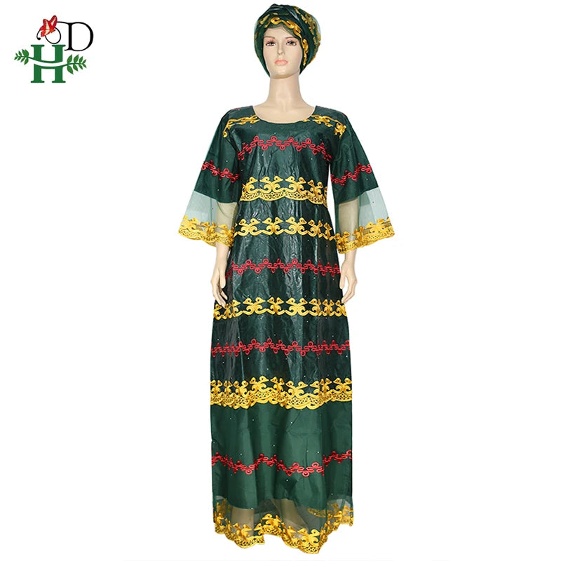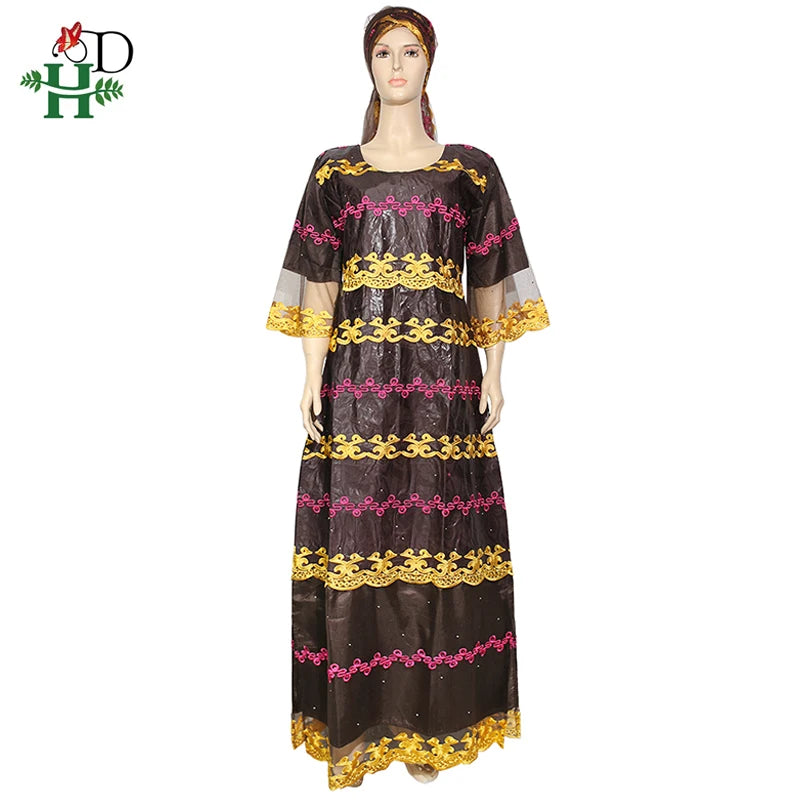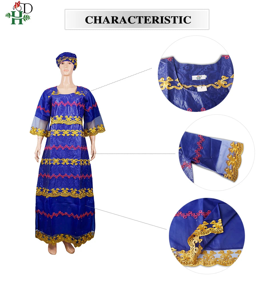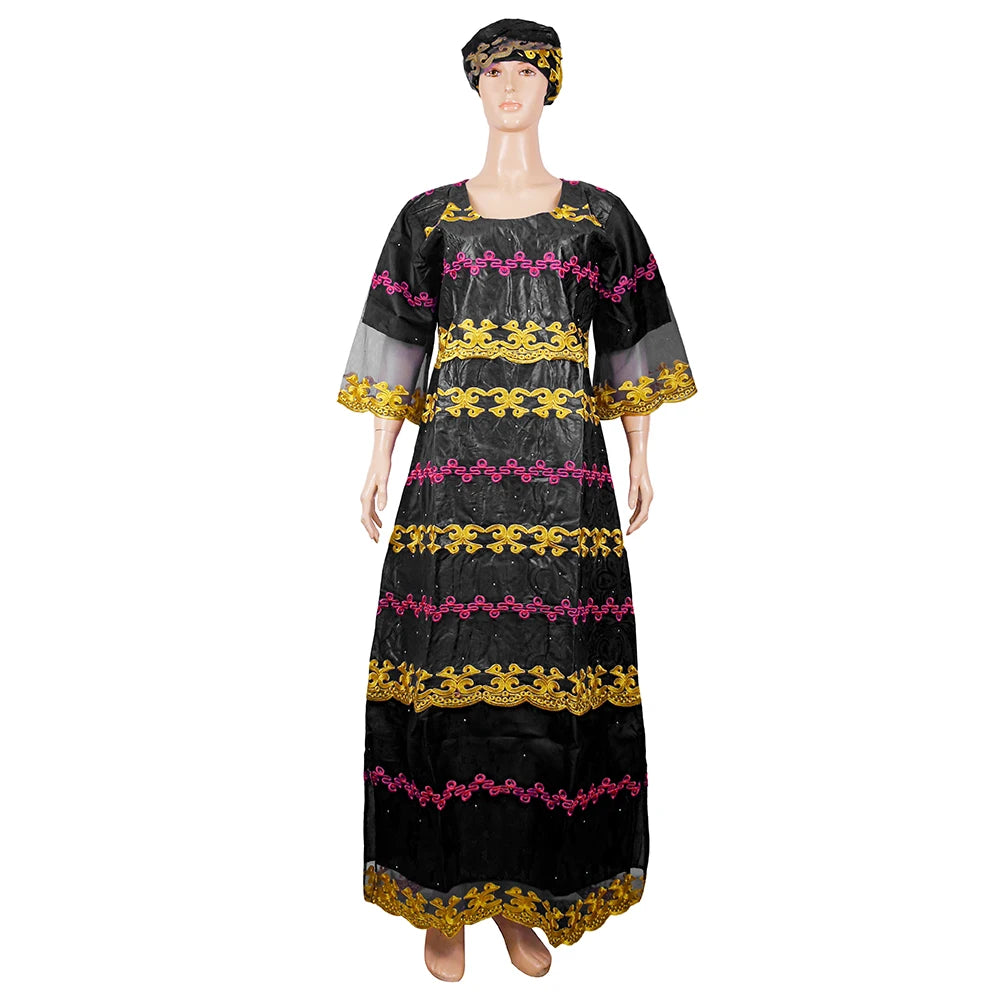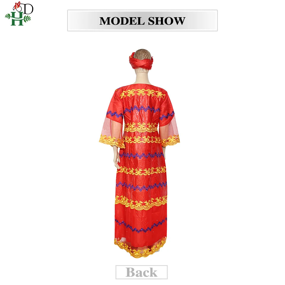 African Embroidery Bazin Riche Dress & Turban – Lace Patchwork Vestido For Wedding Ramadan