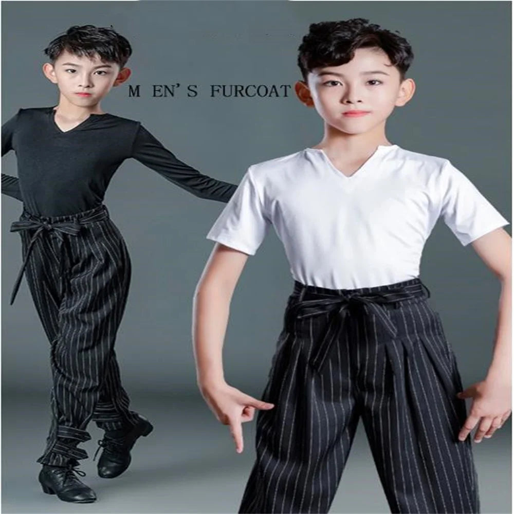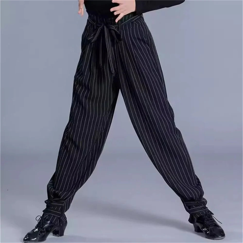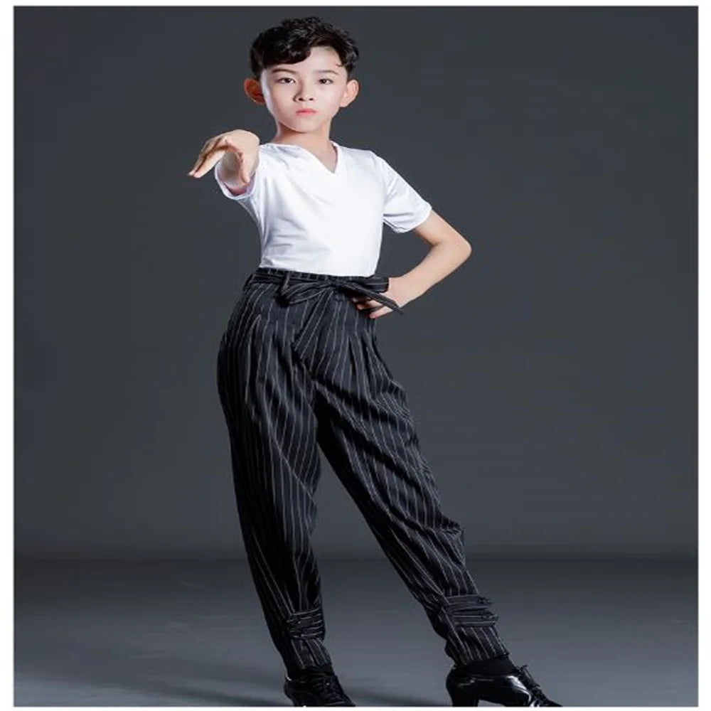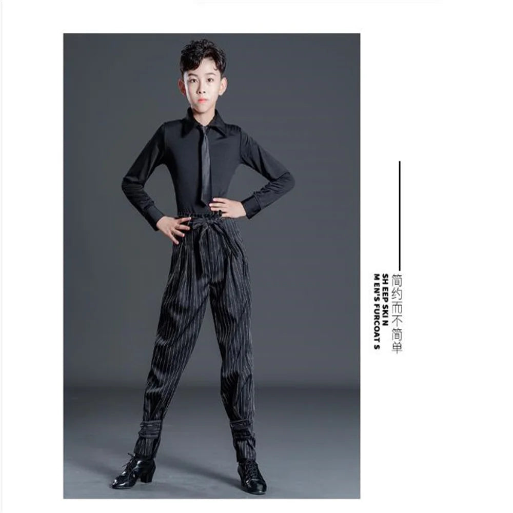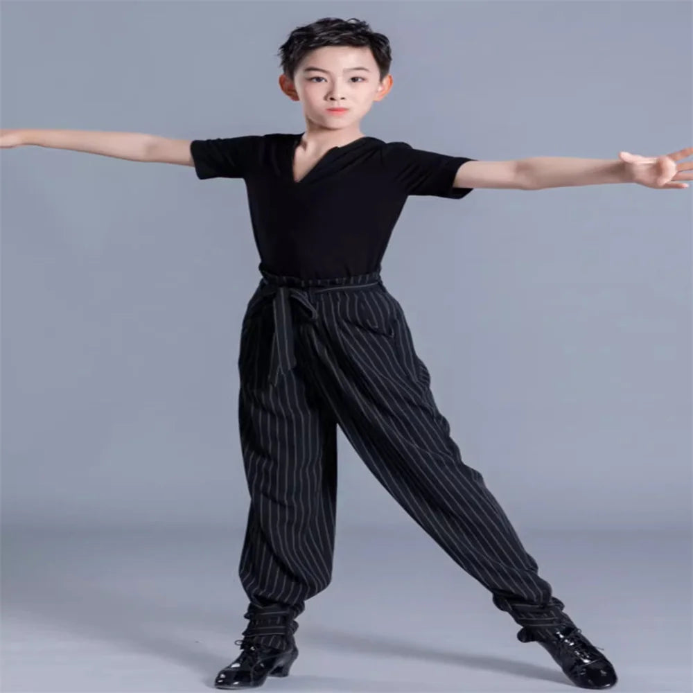 Boys Black Latin Ballroom Dance Pants with Lace-up Waist for Cha Cha/Rumba/Samba