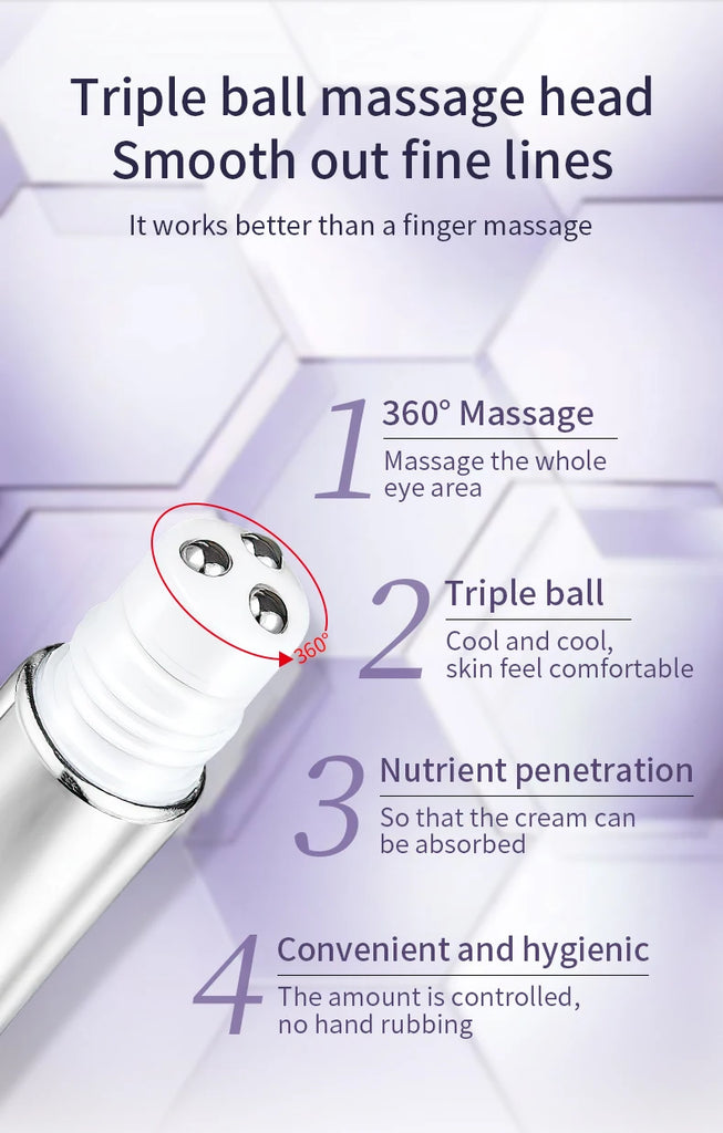 The innovative roller massager applicator enhances absorption while offering a soothing massage to reduce eye bags and puffiness. Perfect for revitalizing the eye area, this cream is essential for achieving refreshed, luminous skin.