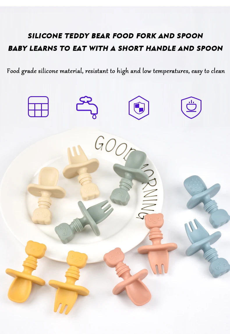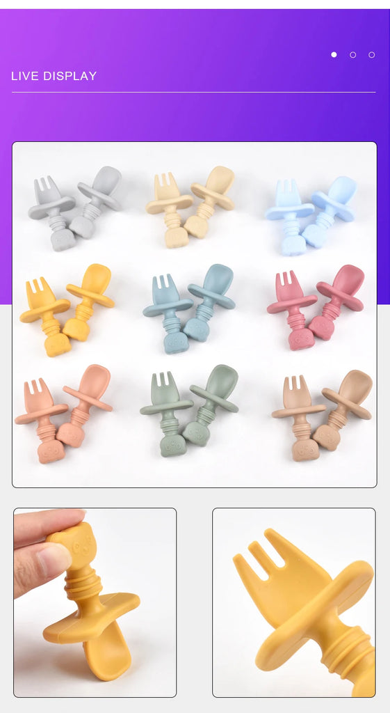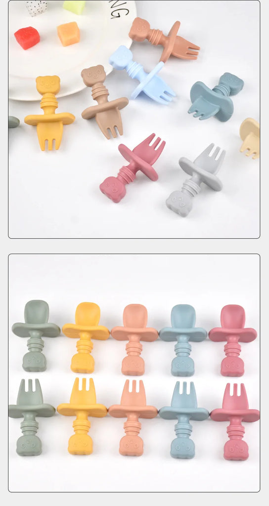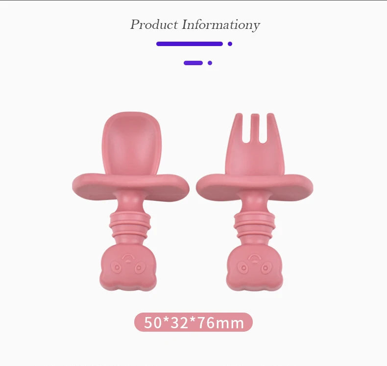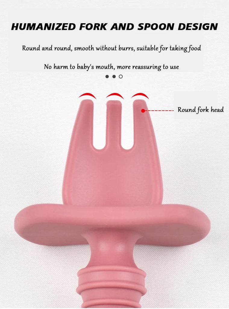 2pc BPA-Free Silicone Baby Fork Spoon Set - Feeding Utensils for Newborns